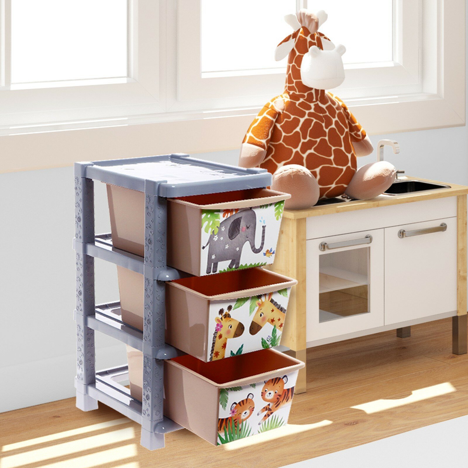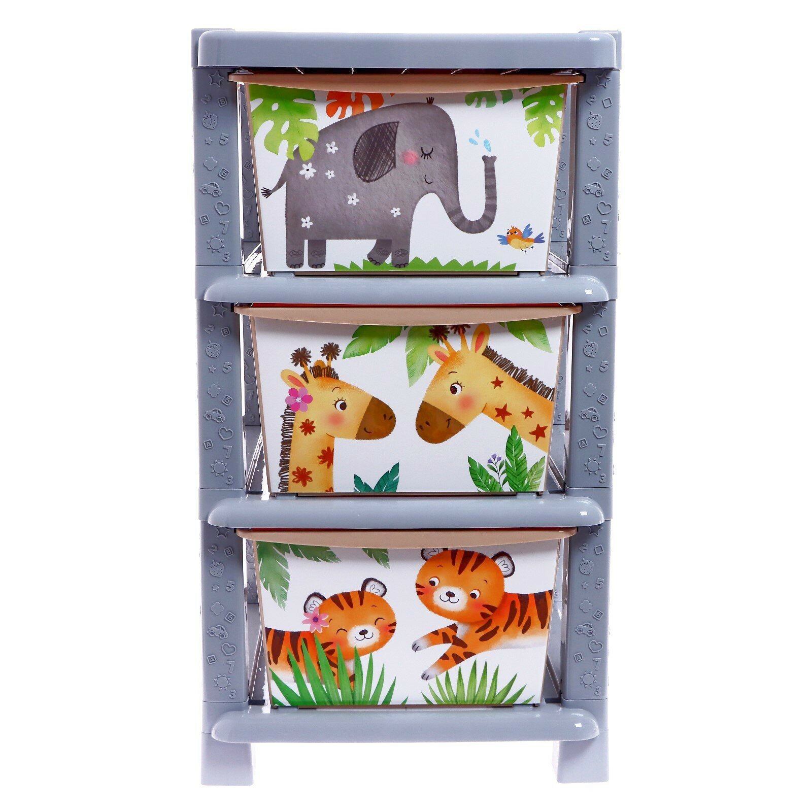 Комод детский пластмассовый "Счастливое детство" с ящиками для хранения игрушек, белья, вещей и разных мелочей, пластиковая мебель, 3 выдвижных секции