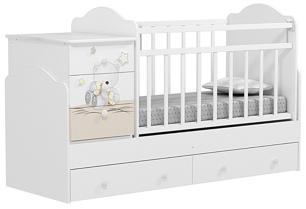 ВДК Детская кровать-трансформер «Слоник» с поперечным маятником, цвет белый