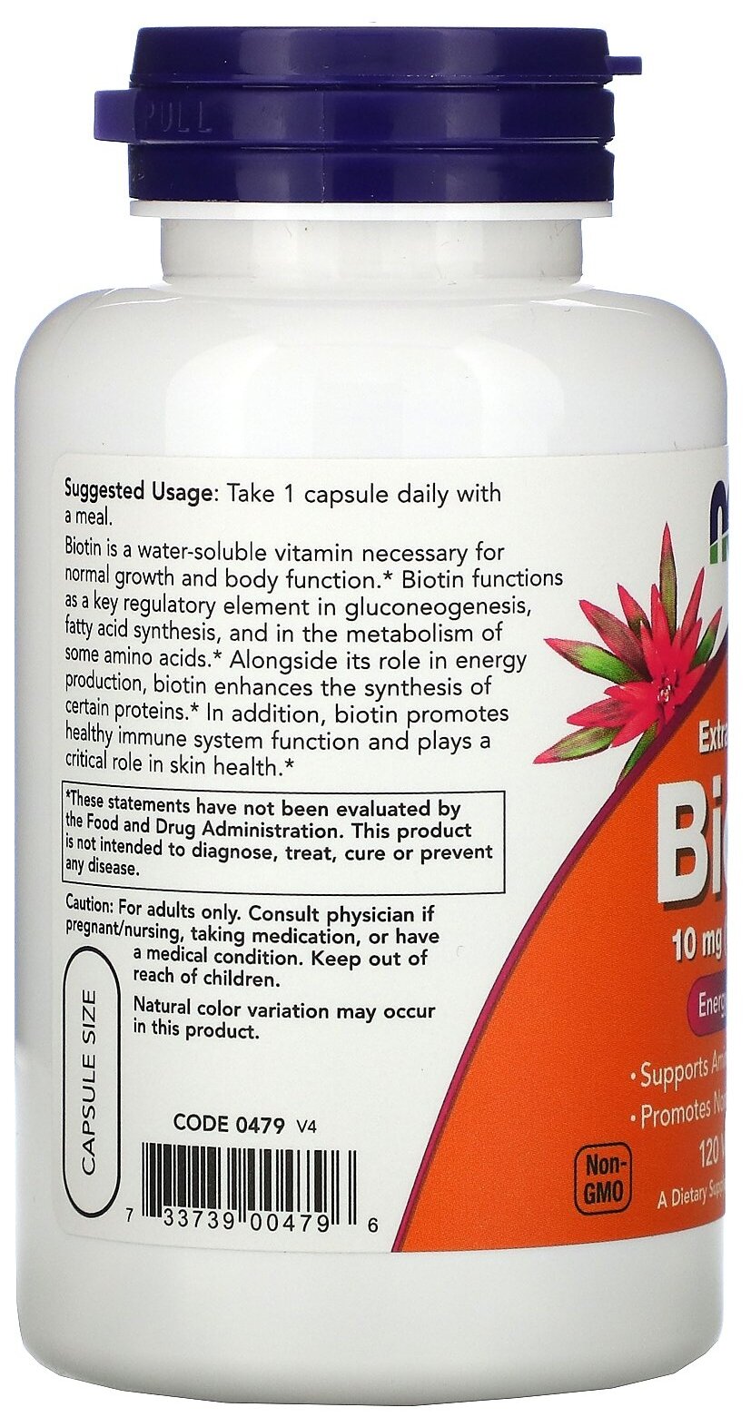 Капсулы NOW Biotin Extra Strength 10 mg, 10 мг, 120 шт. интересное: