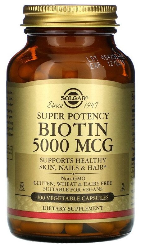 Капсулы SOLGAR Biotin 5000 мкг, 5000 мкг, 100 шт. интересное: