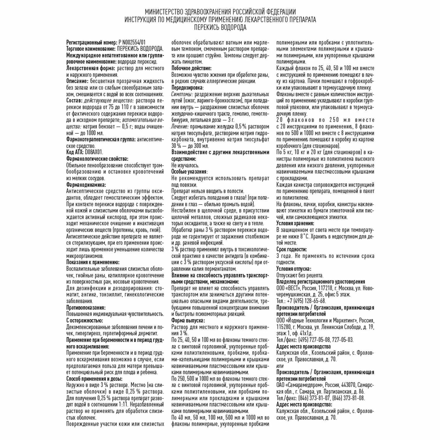 Средство дезинфицирующее (кожный антисептик) Перекись водорода 3%