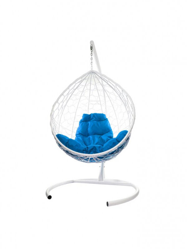 Подвесное кресло Капля цвет белый с синей подушкой