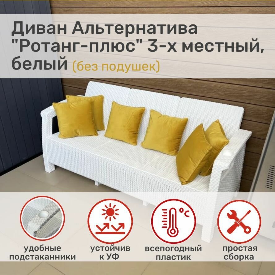 Садовый диван Альтернатива "Ротанг-плюс" М8349, 3-х местный (белый), 188х70х79