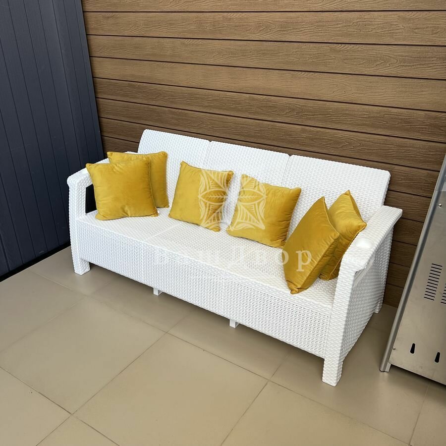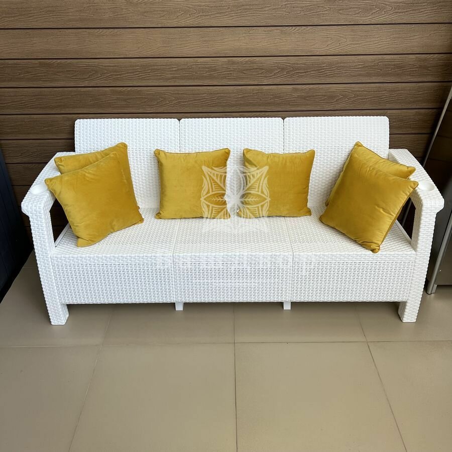 Диван садовый, 3-х местный, 188х70х79 см, белый (с черными подушками)