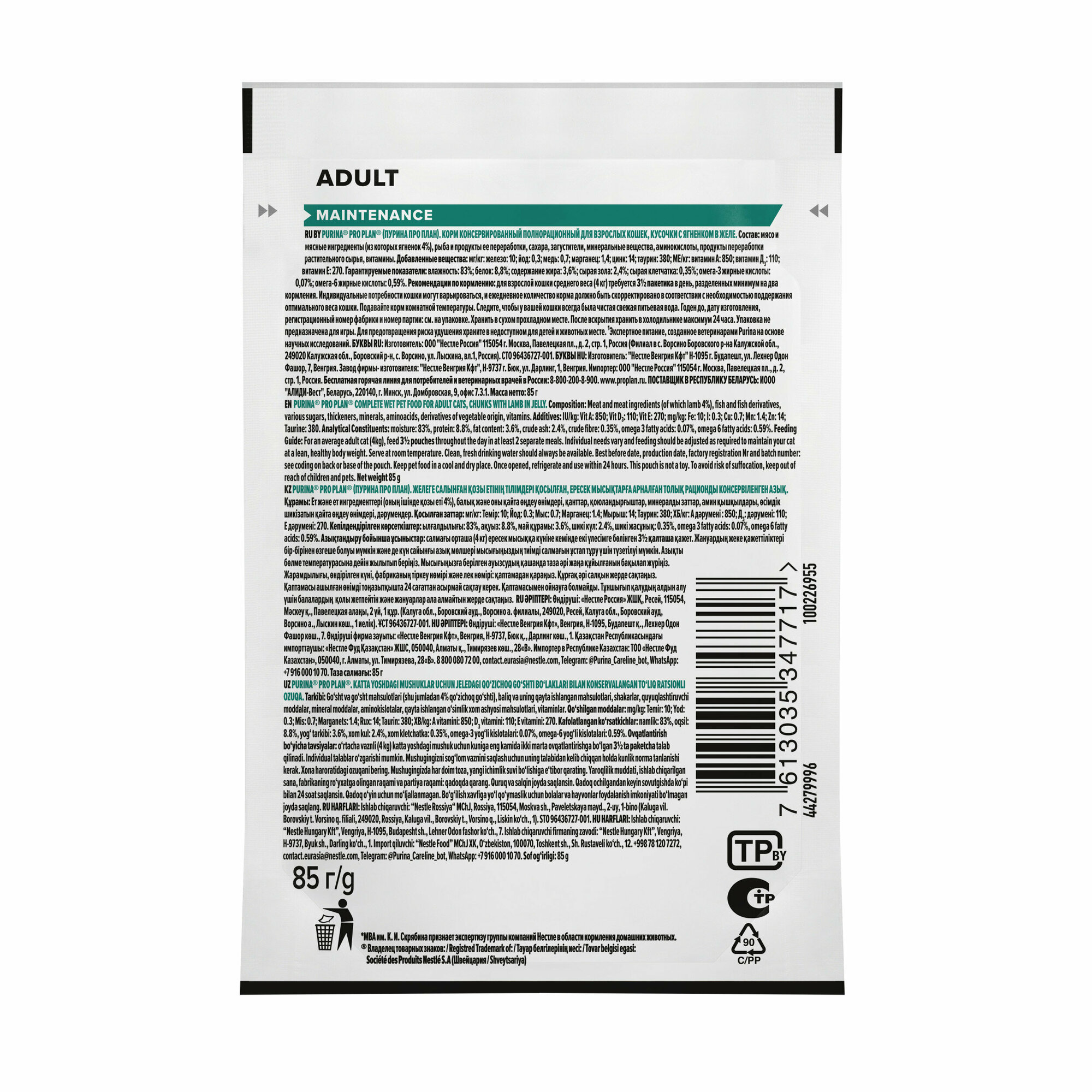 Корм для кошек PRO PLAN Adult, с ягненком в желе пауч 85г (упаковка - 26 шт)