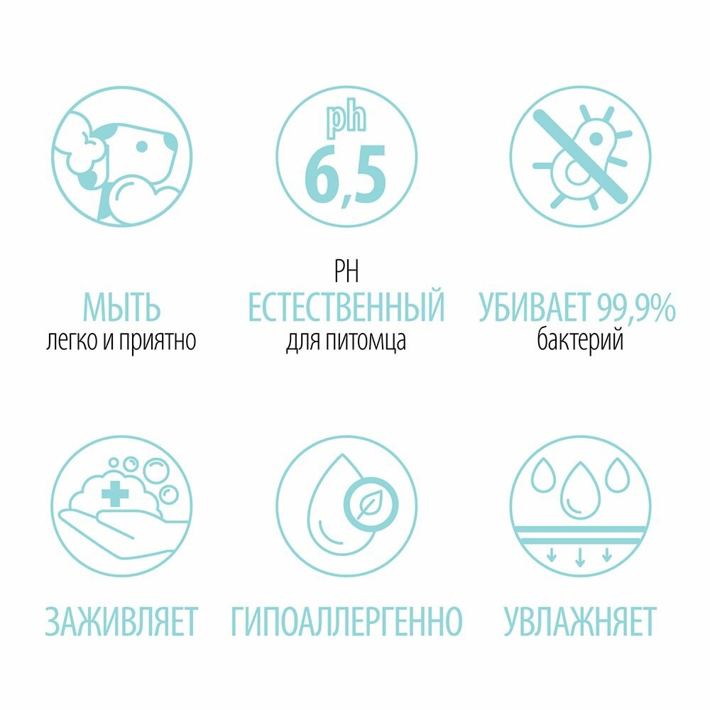 | Плюсы: | Хорошо моет + уничтожает бактерии на шерсти собаки. |