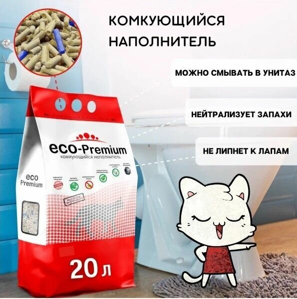 Eco-Premium Blue древесный комкующийся наполнитель для туалета кошек без запаха 20л