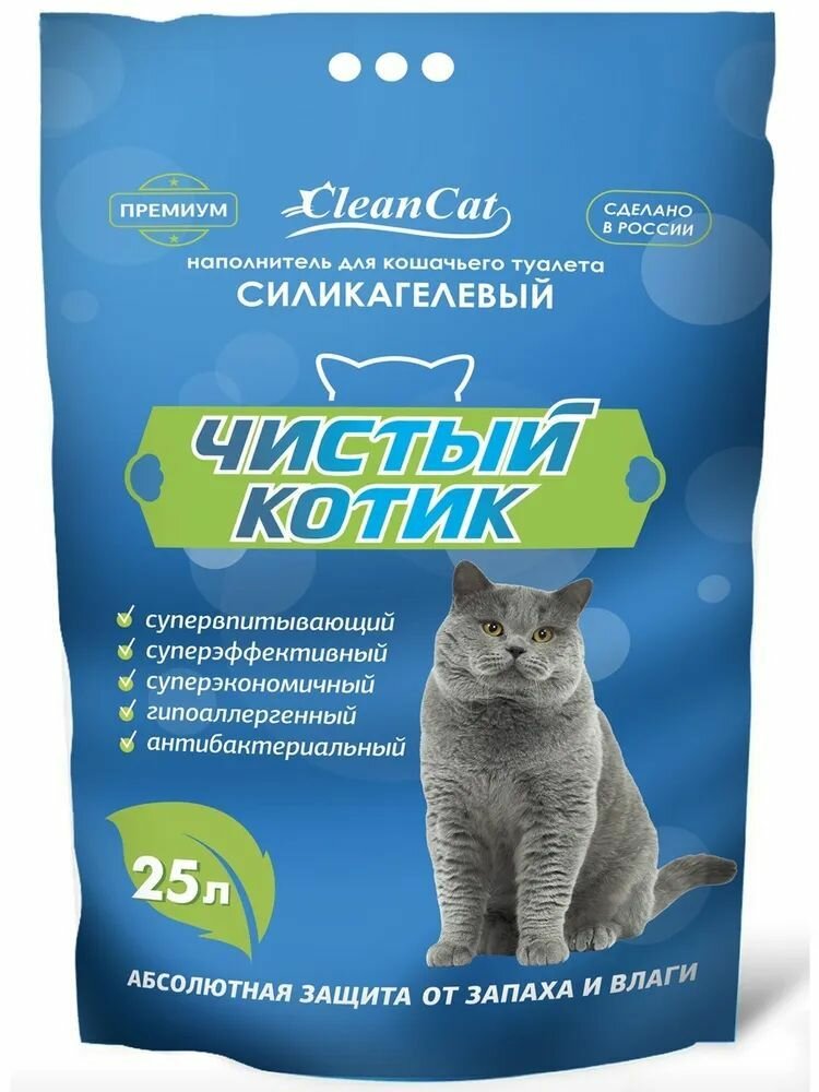 Чистый котик силикагелевый наполнитель для кошачьего туалета колотый с синими гранулами 25 л
