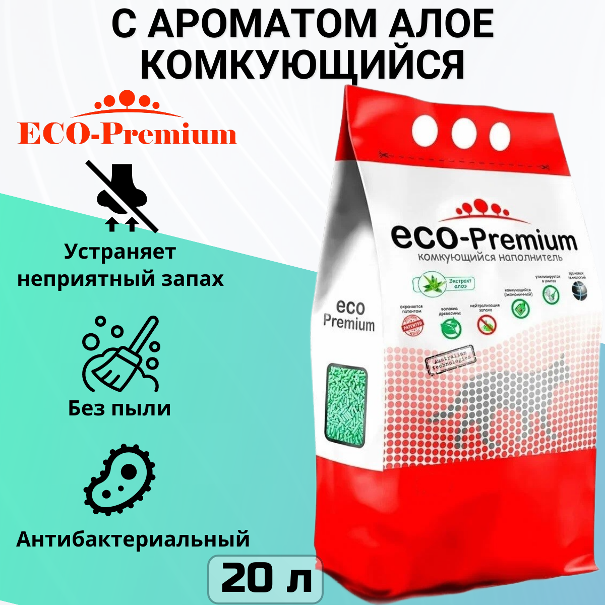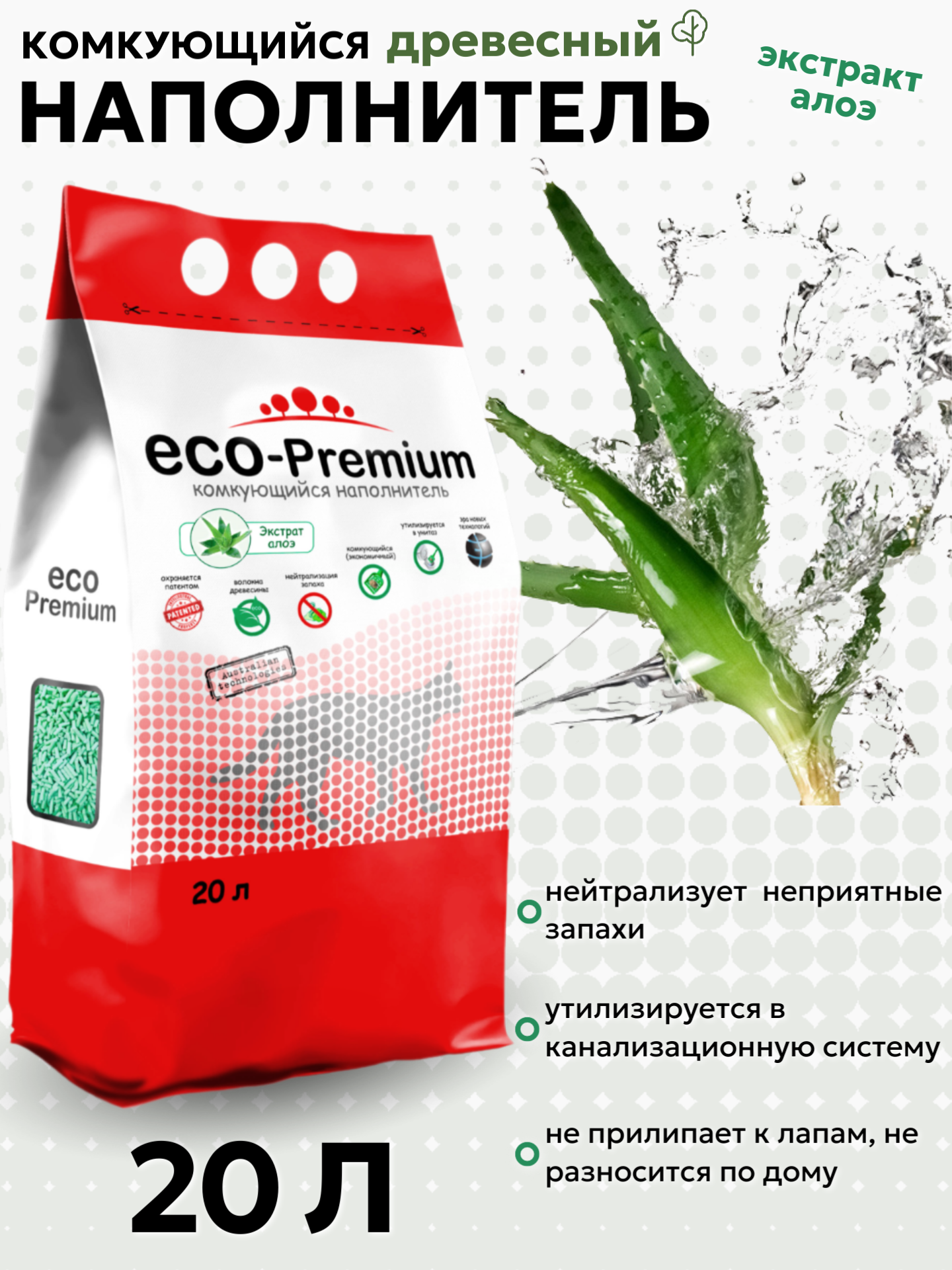 Наполнитель ECO-Premium комкующийся древесный с ароматом Алоэ 20л, 7.6 кг