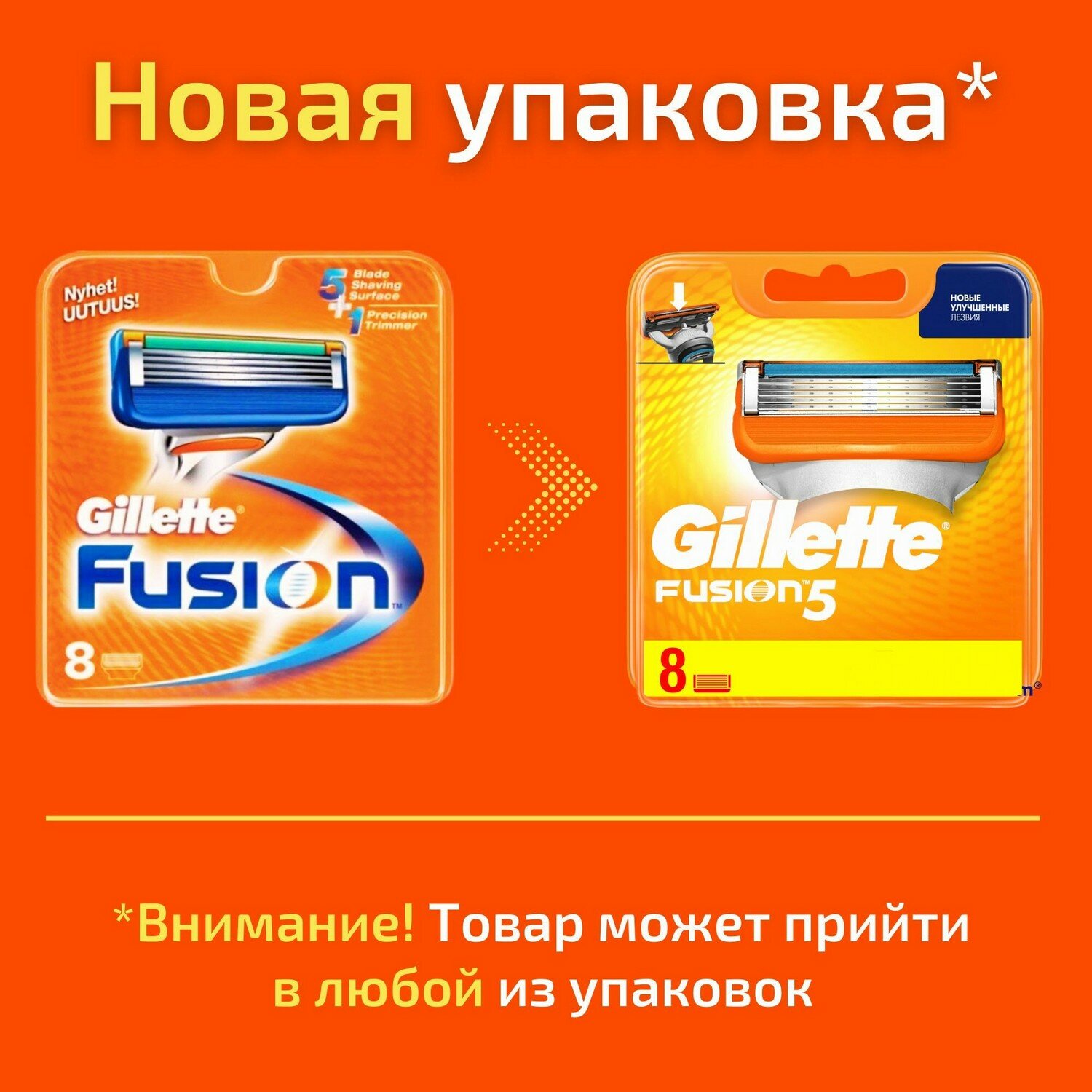 Сменные кассеты Gillette Fusion5, оранжевый, 12 шт.