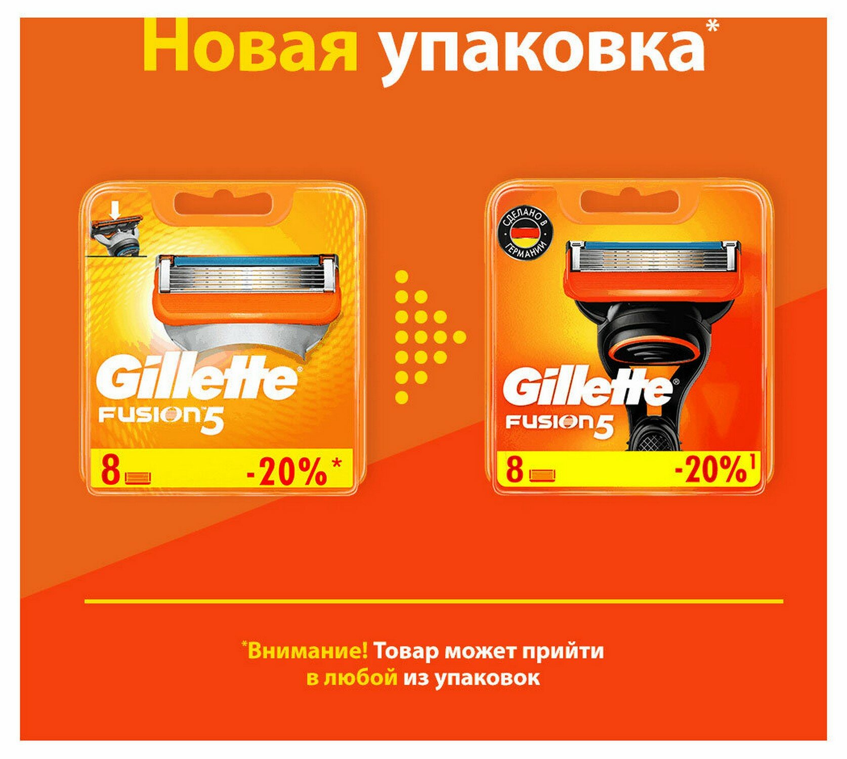 Сменные кассеты Gillette Fusion5, оранжевый, 4 шт., 4 уп.