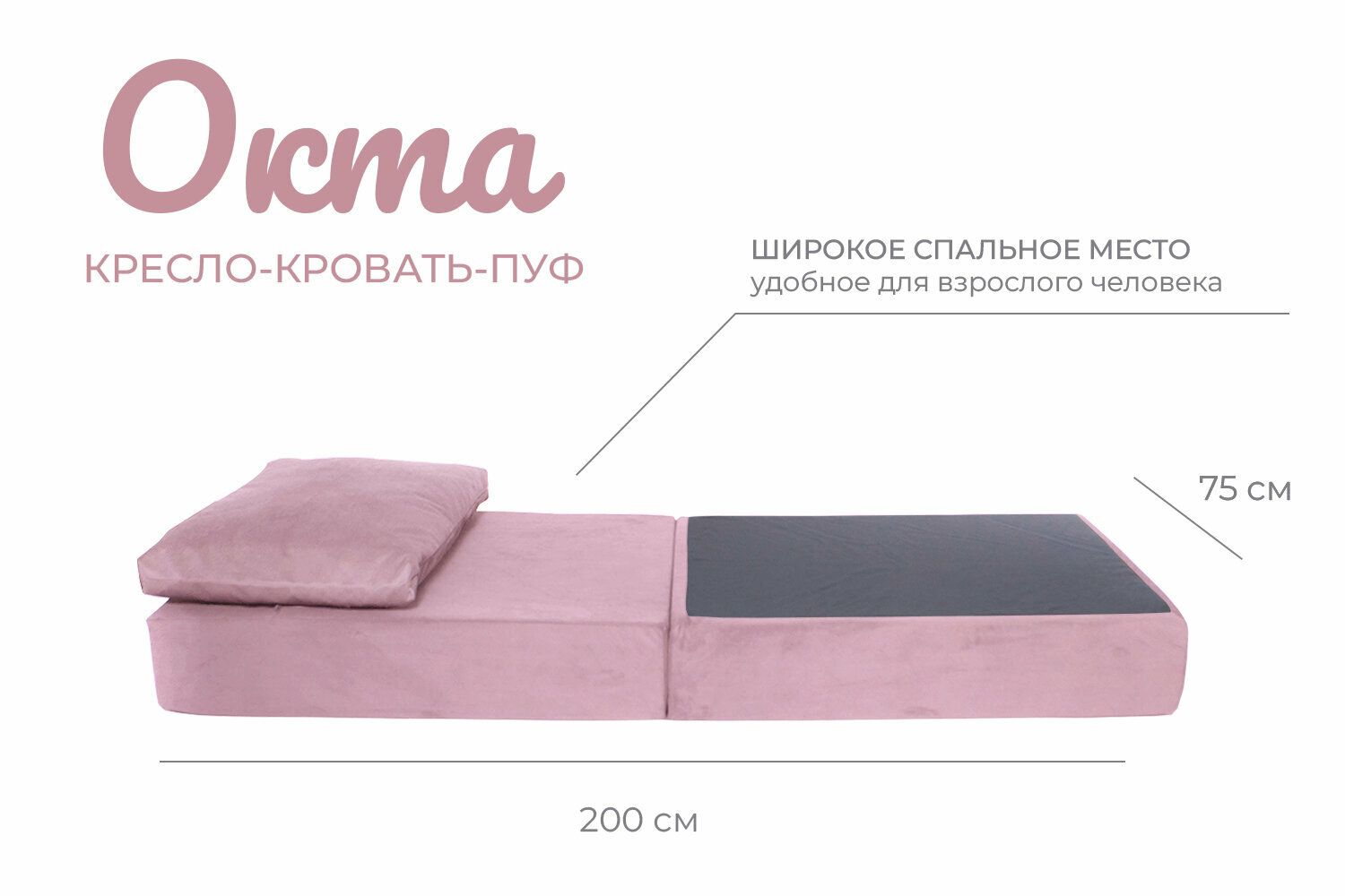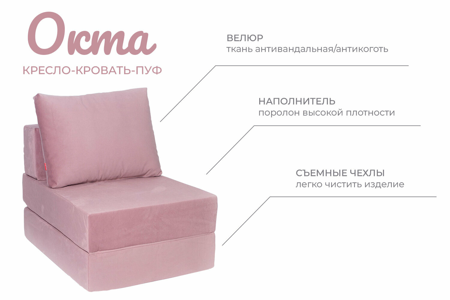 Кресло-кровать-пуф бескаркасное 75*100*75 "Окта" велюр FREE-FORM Пыльная роза интересное: