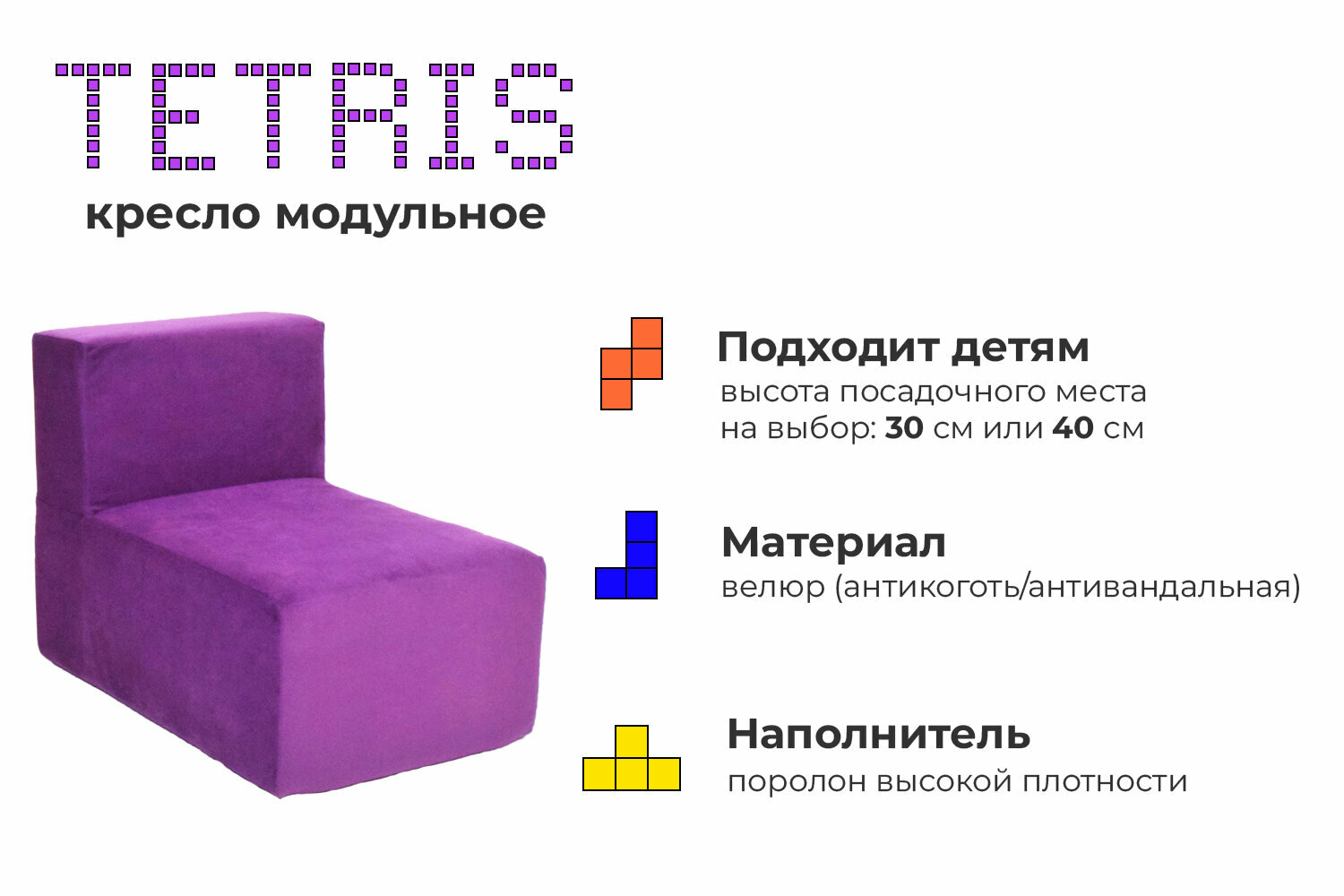 Кресло модульное Тетрис 30 Бескаркасное 50х80х60 для отдыха на балконе террасе веранде лоджии в игровую в холл коридор поролон велюр интересное: