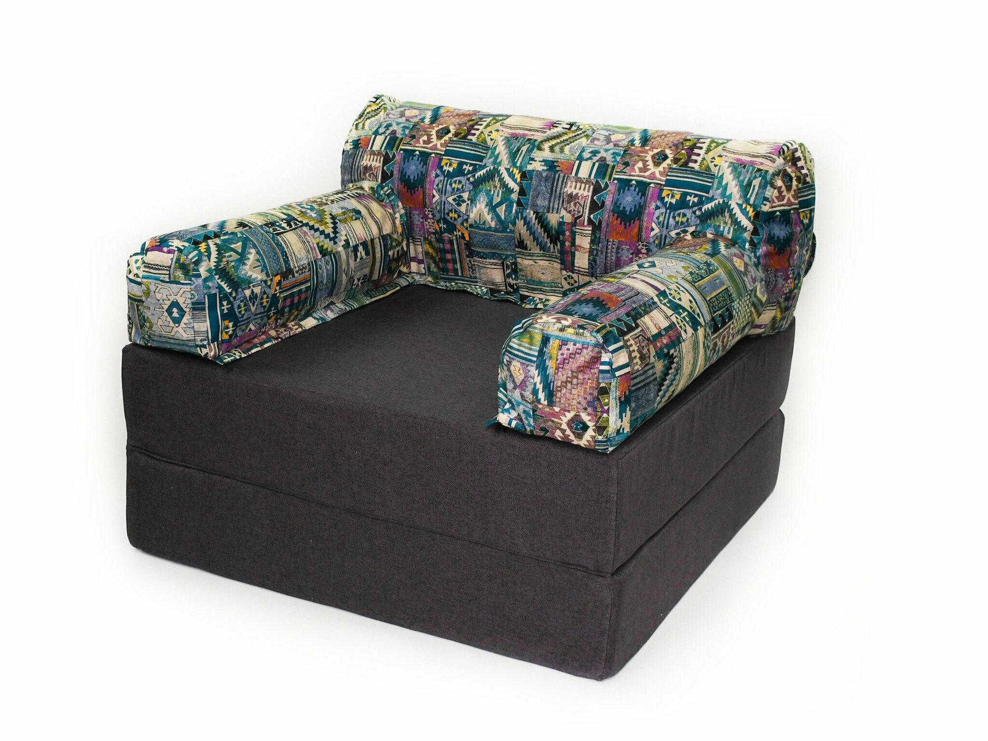 Кресло диван кровать бескаркасное Вики 100х100х75 с подушкой-опорой для отдыха на балконе террасе веранде лоджии в холл поролон рогожка/велюр сити