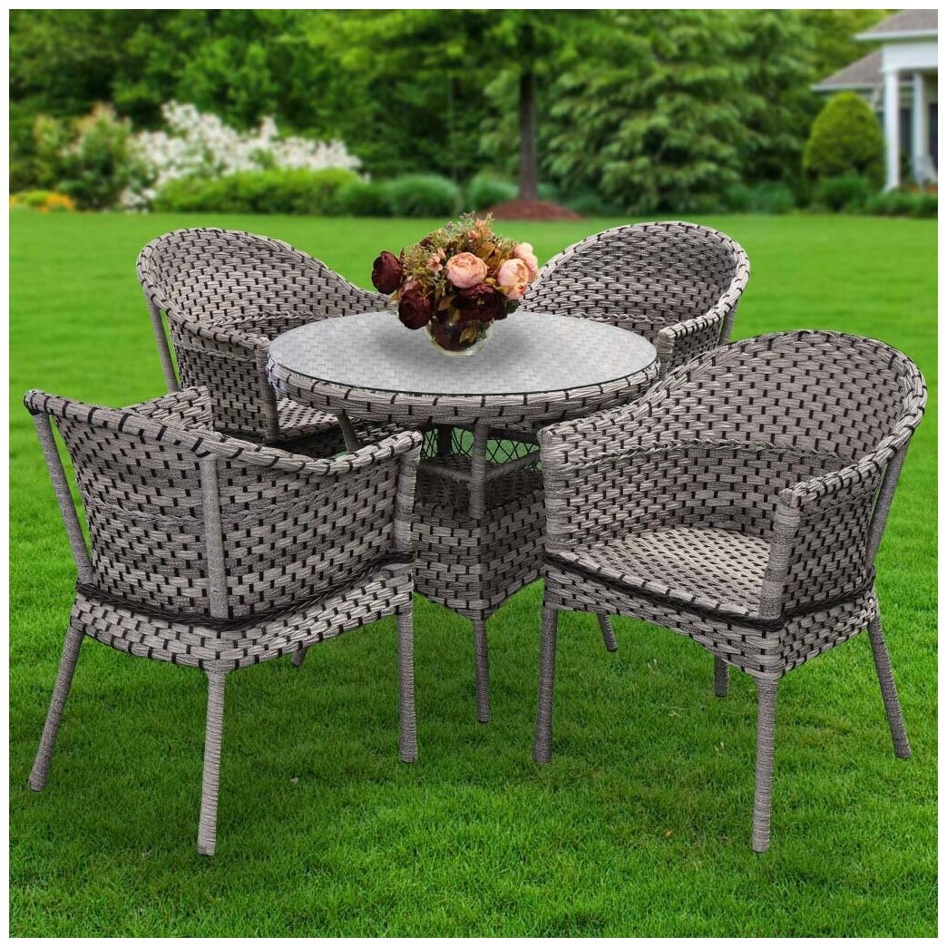 Мебель садовая Green Days, Кристи, серая, стол, 80х80х73 см, 4 кресла, 150 кг интересное:
