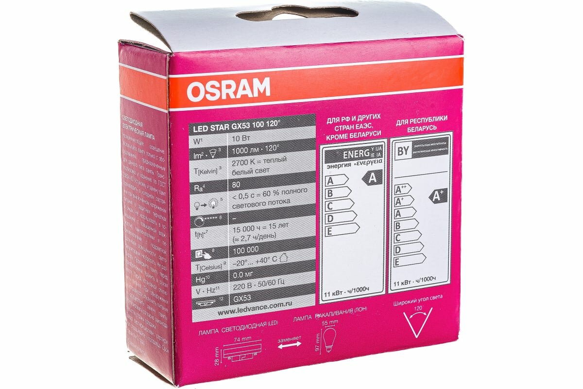 Ниже Вы можете прочитать отзывы на Светодиодная лампа OSRAM LED STAR, GX53, 10Вт, GX53, 1000 Лм, 2700 К, теплый белый свет 4058075496378, ознакомится с подробными характеристиками, посмотреть интересные обзоры и фотографии на Светодиодная лампа OSRAM LED STAR, GX53, 10Вт, GX53, 1000 Лм, 2700 К, теплый белый свет 4058075496378.