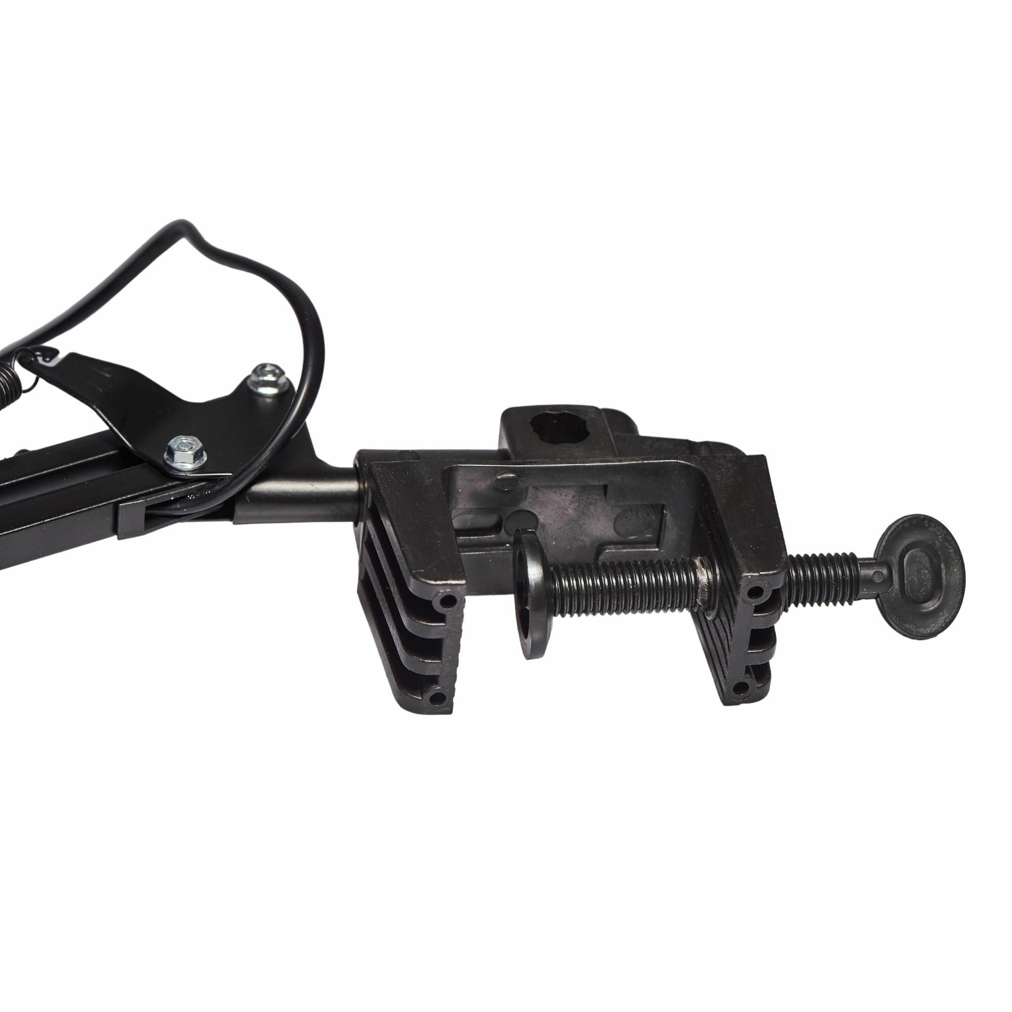 | Минусы: | Основание (подставка) должна быть тяжелее. Не во всех положениях устойчиво стоит. Струбцына пластиковая сломалась на второй раз крепления к столу. |