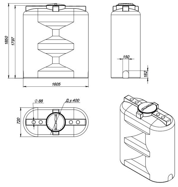 Емкость полиэтиленовая S 1500 л, 1850х720х1605 мм интересное: