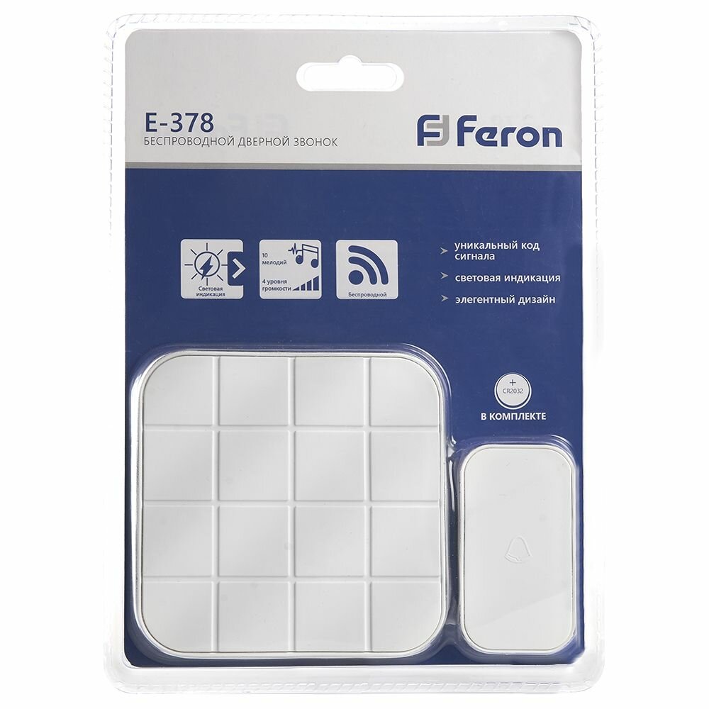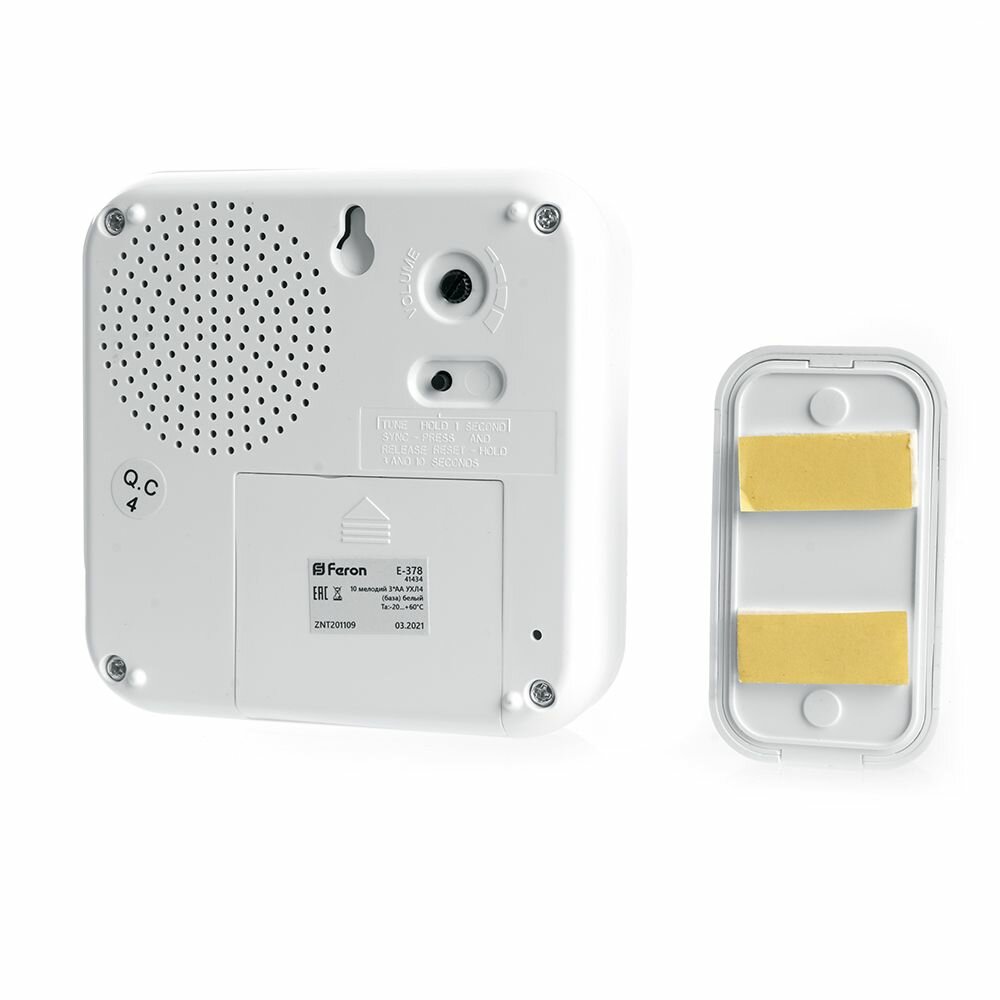 Звонок дверной беспроводной Feron E-378 Электрический 10 мелодий белый с питанием от батареек, 41434