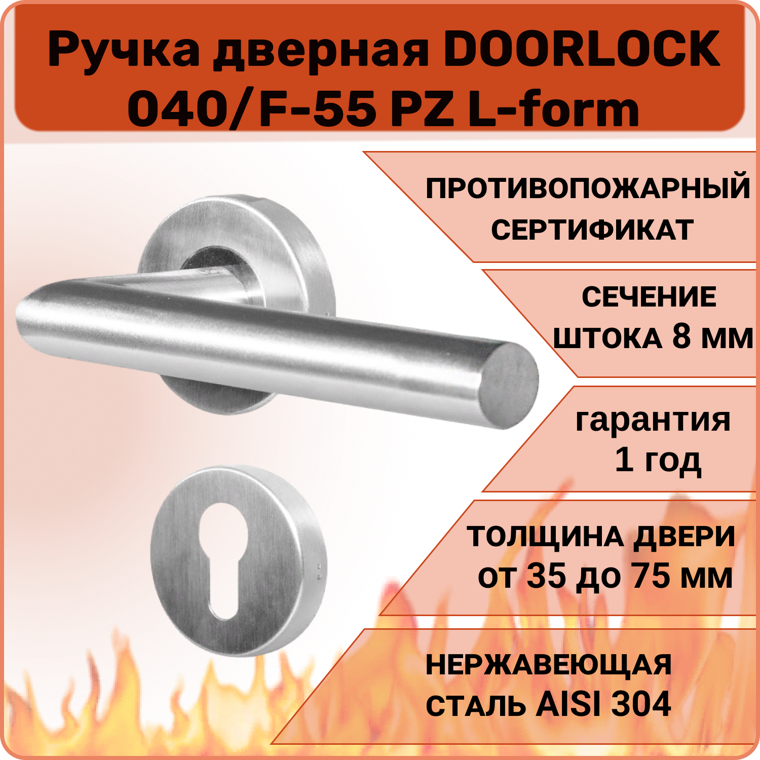 Ручка дверная противопожарная DOORLOCK 040/F-55 PZ L-form, матовая нержавеющая сталь интересное: