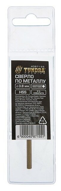 Сверло по металлу тундра, HSS-Co (5% кобальта), цилиндрический хвостовик, 3.8 х 75 мм интересное: