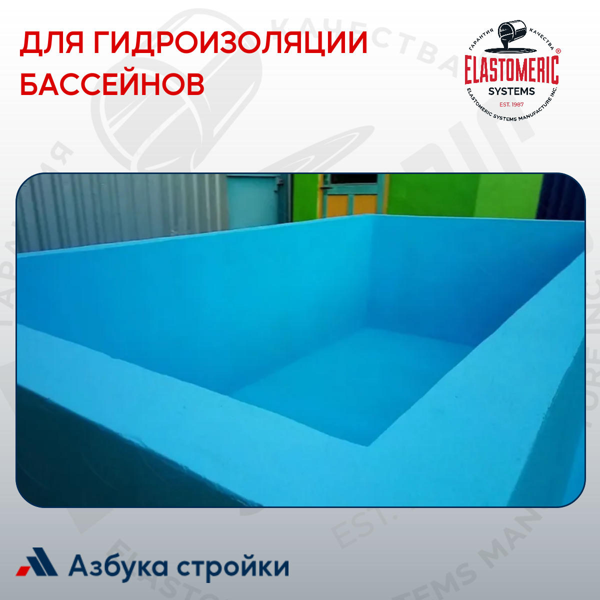 Мастика для гидроизоляции бассейнов Elastomeric POOL гидроизоляция для душевой, ванны - гидроизоляция резервуаров, фонтанов, водоемов, 20кг, голубой