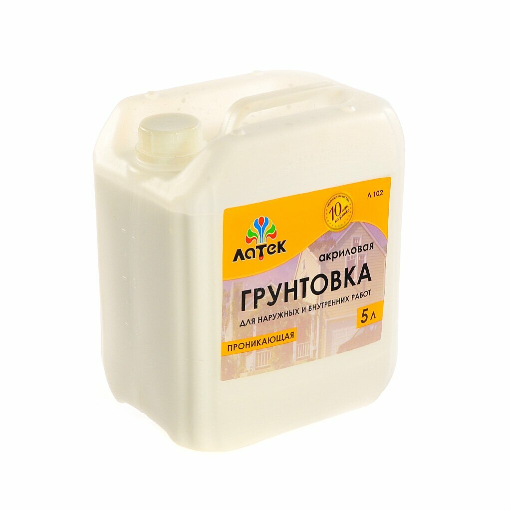 Грунтовка воднодисперсионная, акриловая, Латек, Л102, для внутренних и наружных работ, 5 л, желтая этикетка интересное: