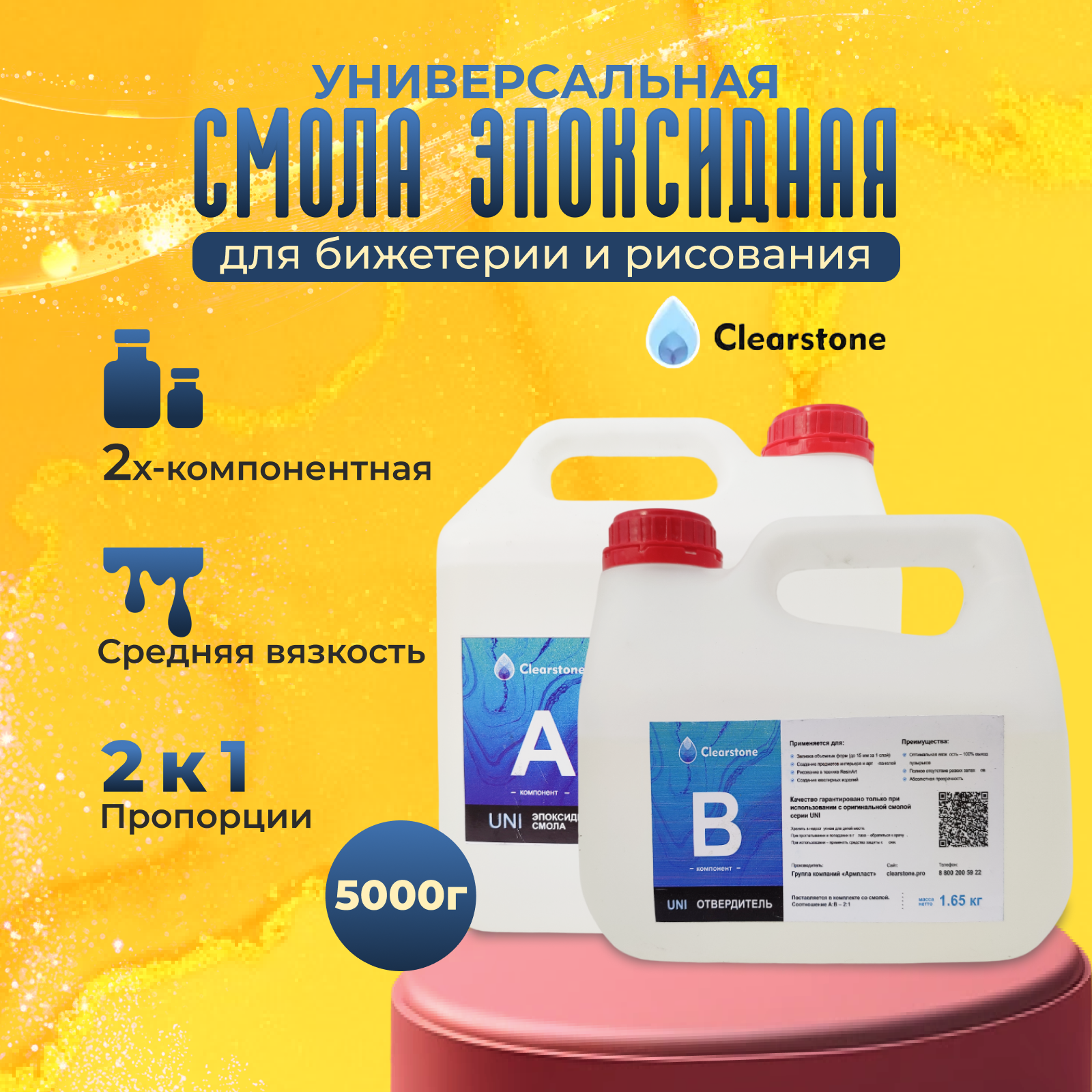 Купить Смола эпоксидная для бижутерии (5кг) (Ювилирная, средняя вязкость), универсальная CLEARSTONE UNI