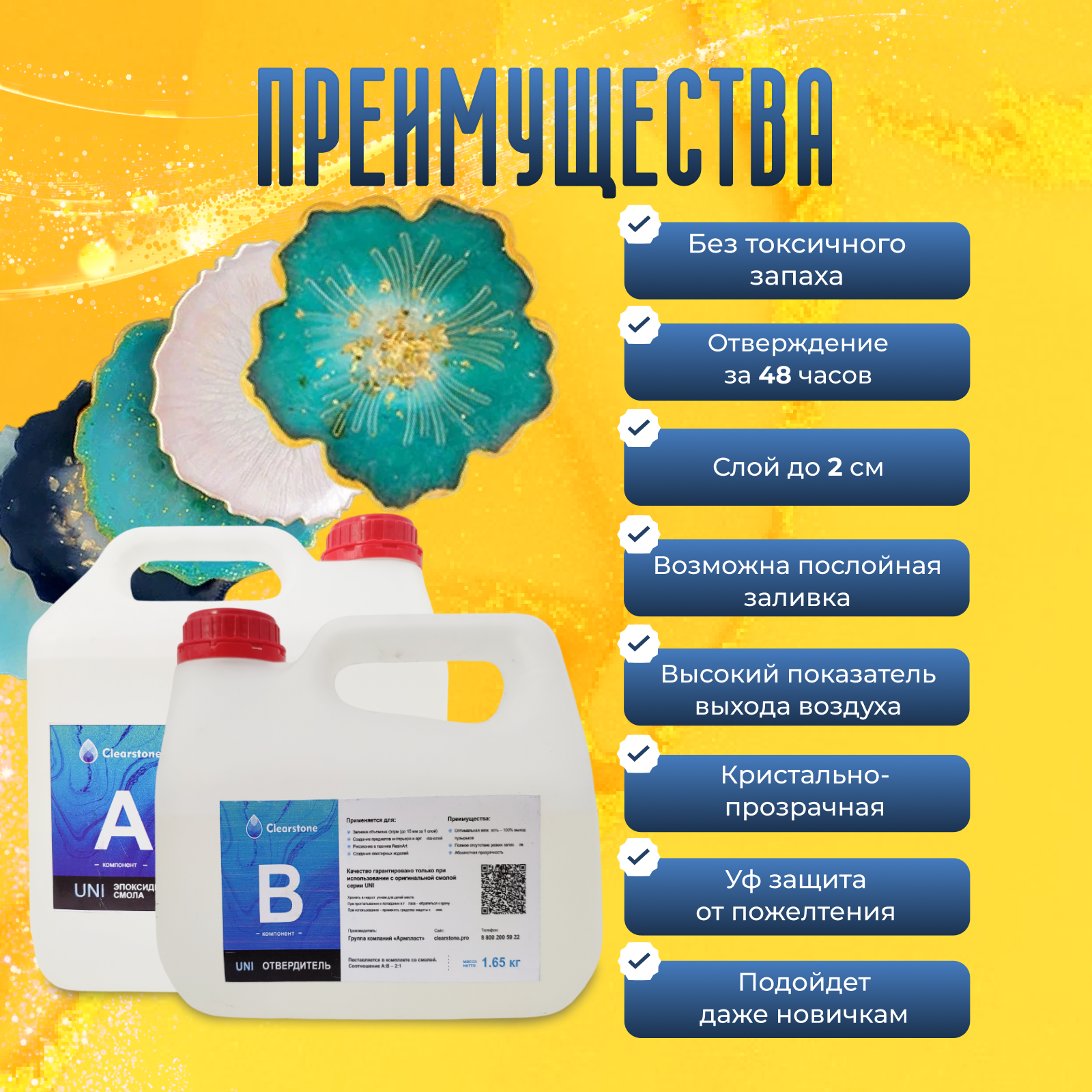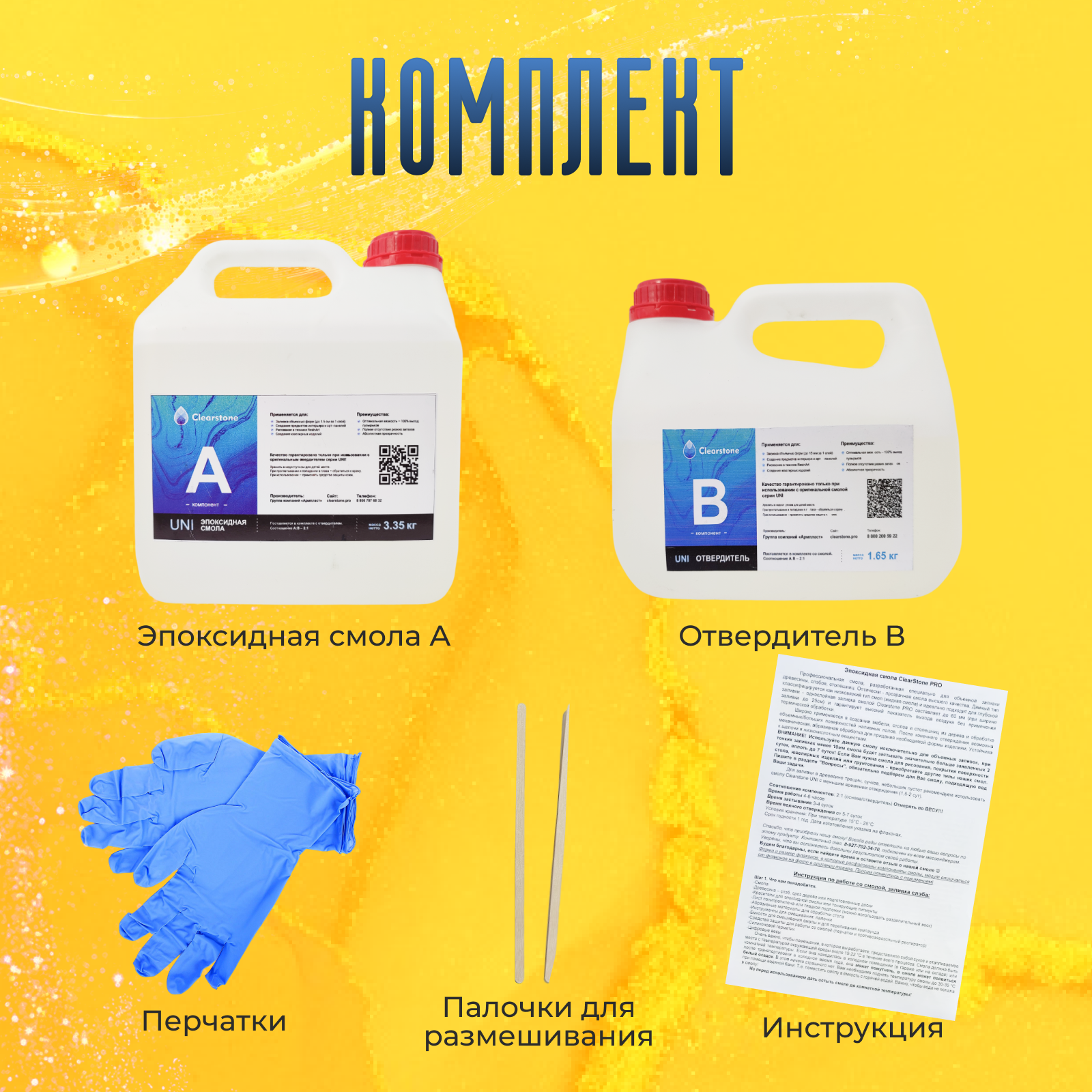 Смола эпоксидная для бижутерии (5кг) (Ювилирная, средняя вязкость), универсальная CLEARSTONE UNI интересное: