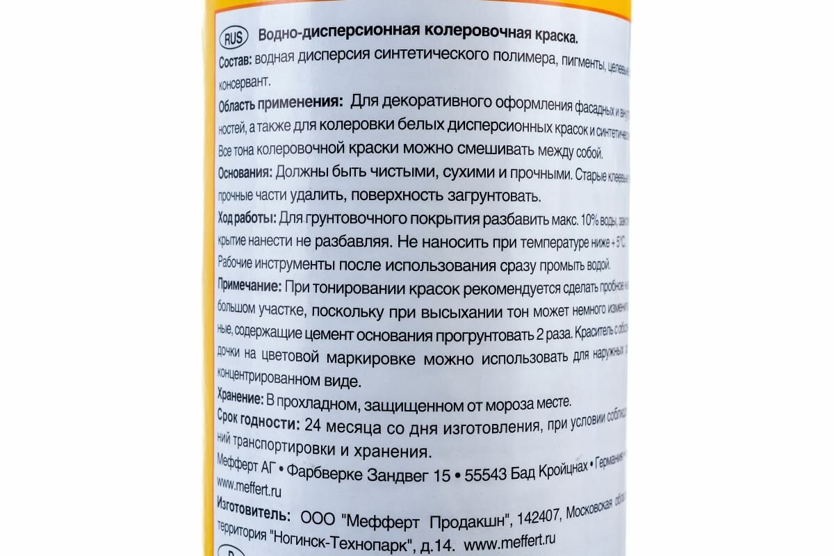 Колорант водно-дисперсионный Dufa Vollton und Abtonfarbe D230-0102 оранжевый 750 мл.