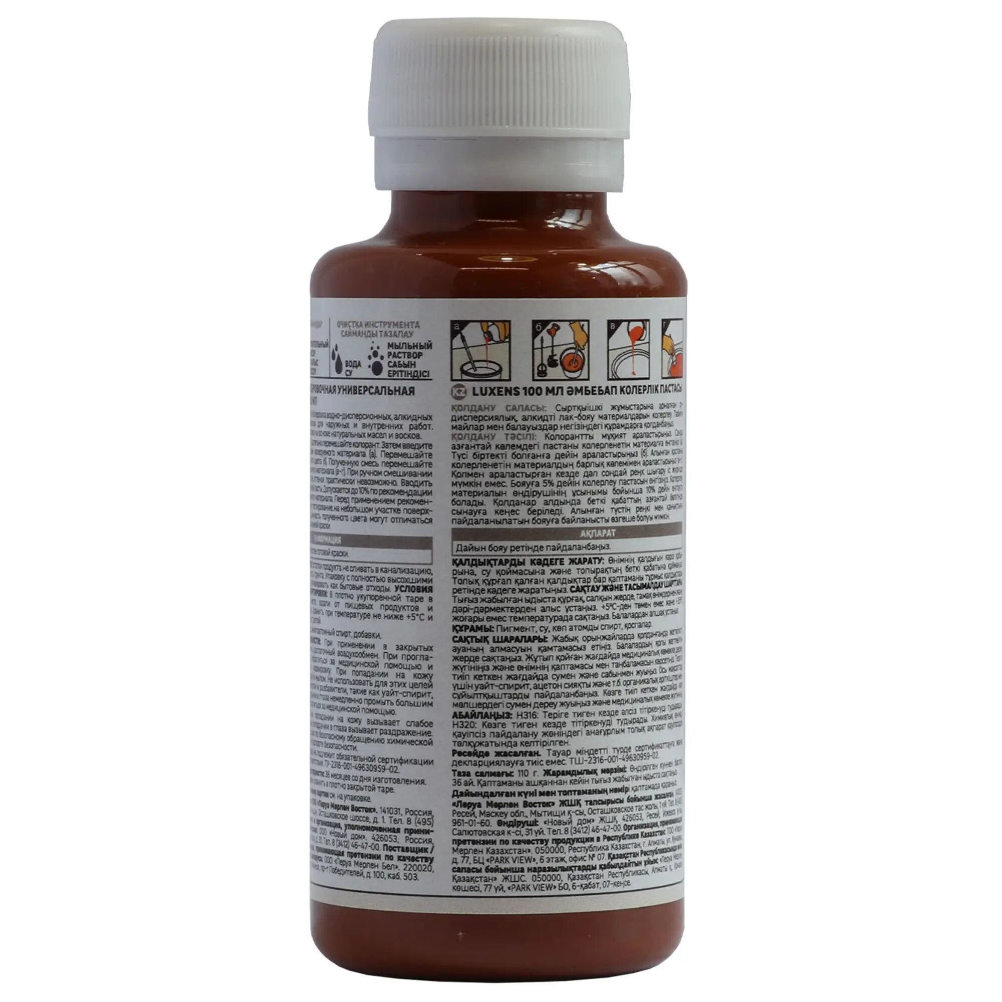 Колеровочная паста Luxens колорант универсальный для интерьерных и фасадных работ, коричневый, 0.1 л