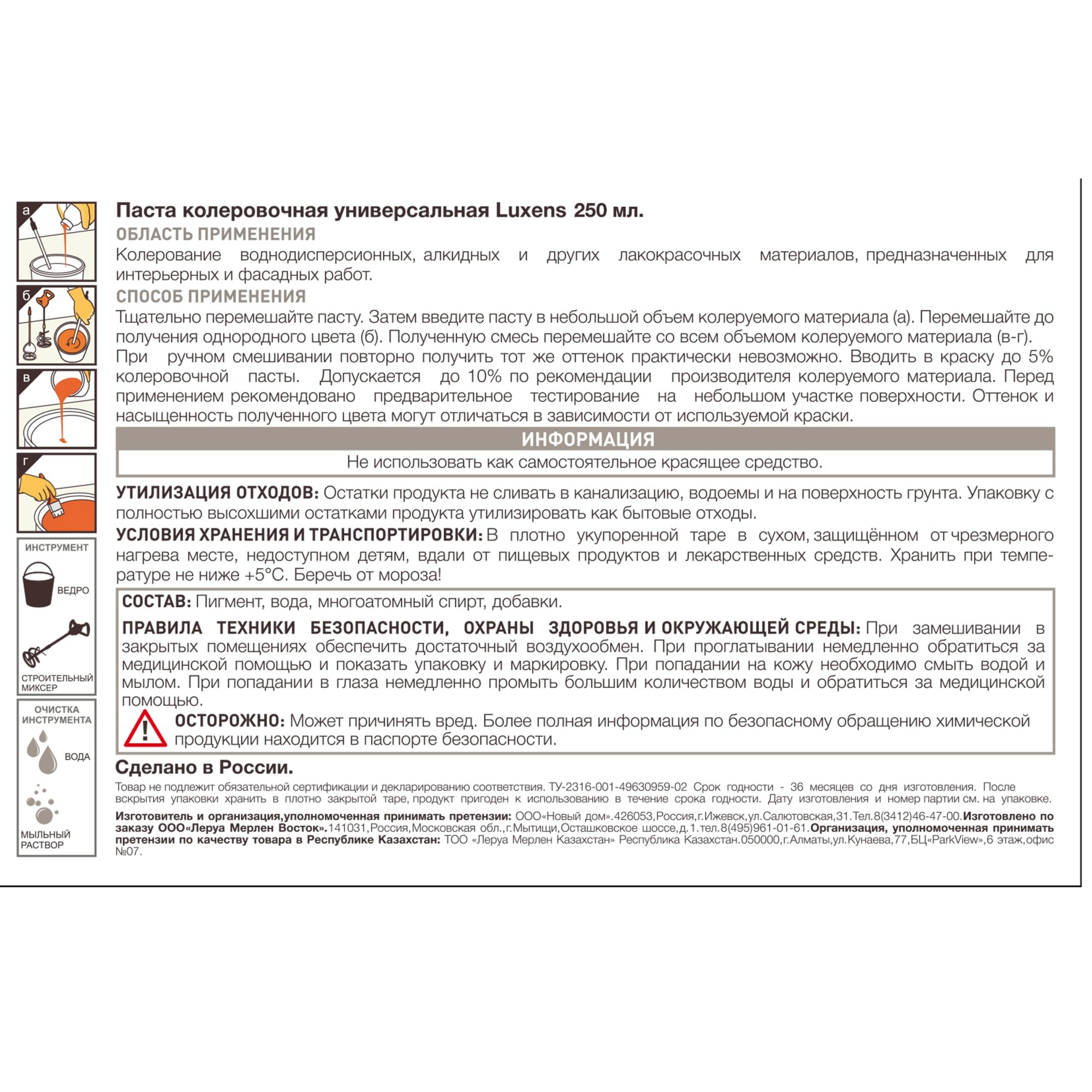 Колеровочная паста Luxens колорант универсальный для интерьерных и фасадных работ, коричневый, 0.25 л
