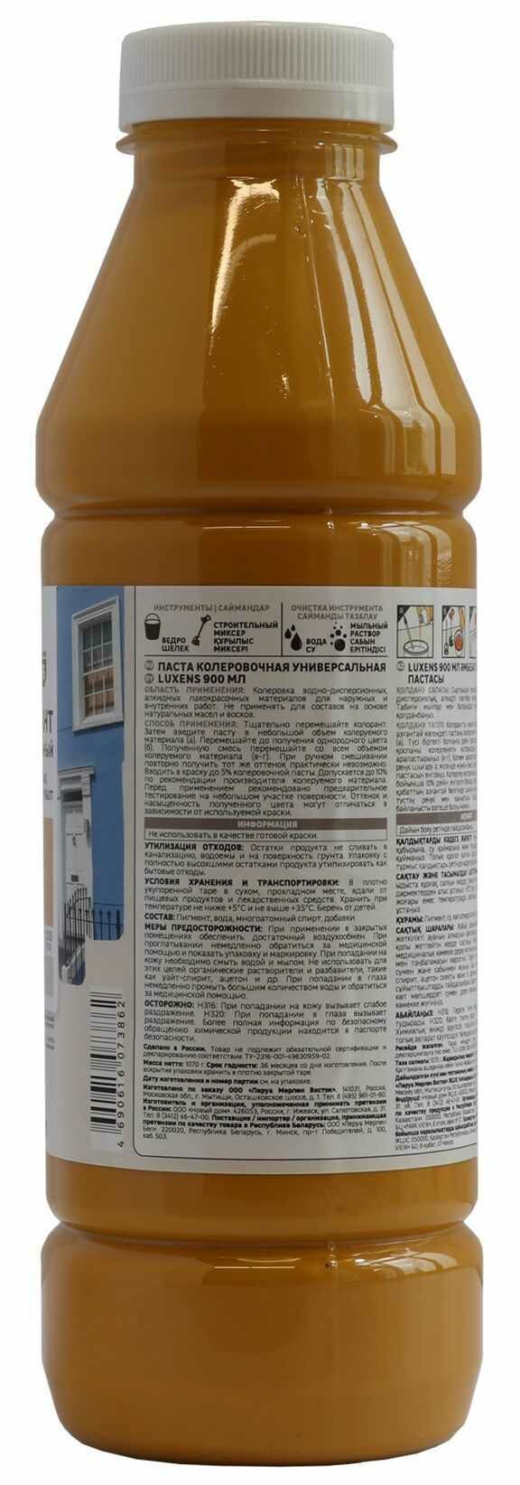 Колеровочная паста Luxens колорант универсальный для интерьерных и фасадных работ, охра, 0.9 л