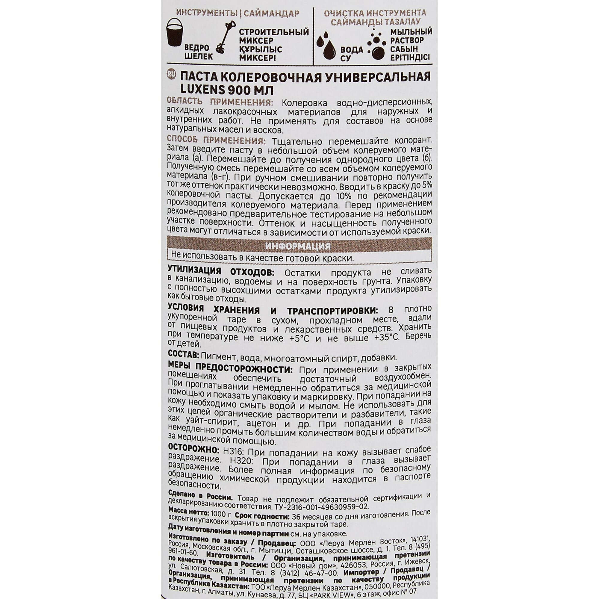 Колеровочная паста Luxens колорант универсальный для интерьерных и фасадных работ, черный, 0.45 л, 0.5 кг