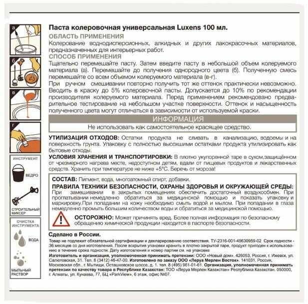 Колеровочная паста Luxens колорант универсальный для интерьерных и фасадных работ, красный, 0.1 л, 0.12 кг