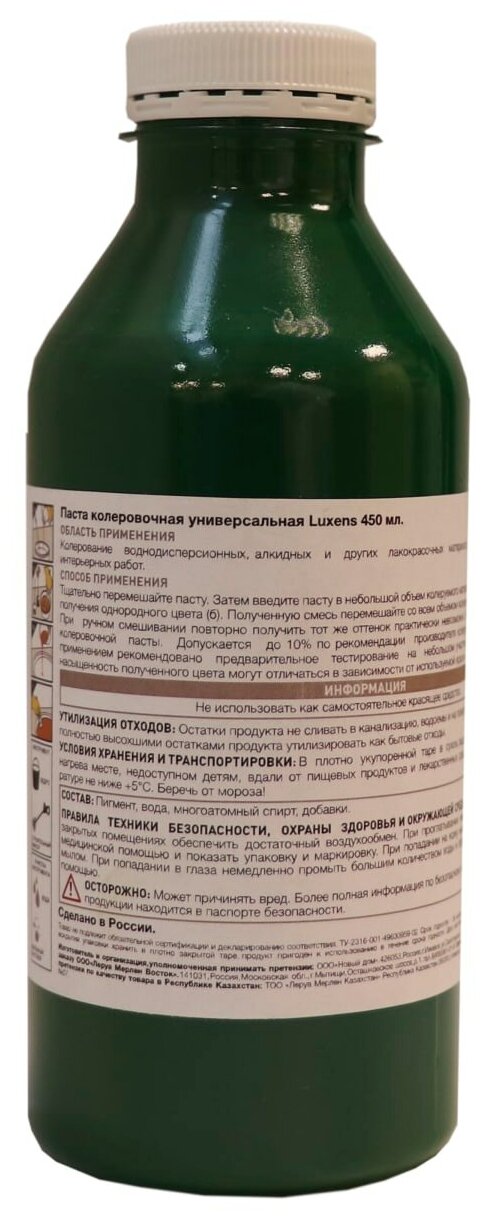Ниже Вы можете прочитать отзывы на Колорант Luxens 0.45 л цвет зеленый, ознакомится с подробными характеристиками, посмотреть интересные обзоры и фотографии на Колорант Luxens 0.45 л цвет зеленый.