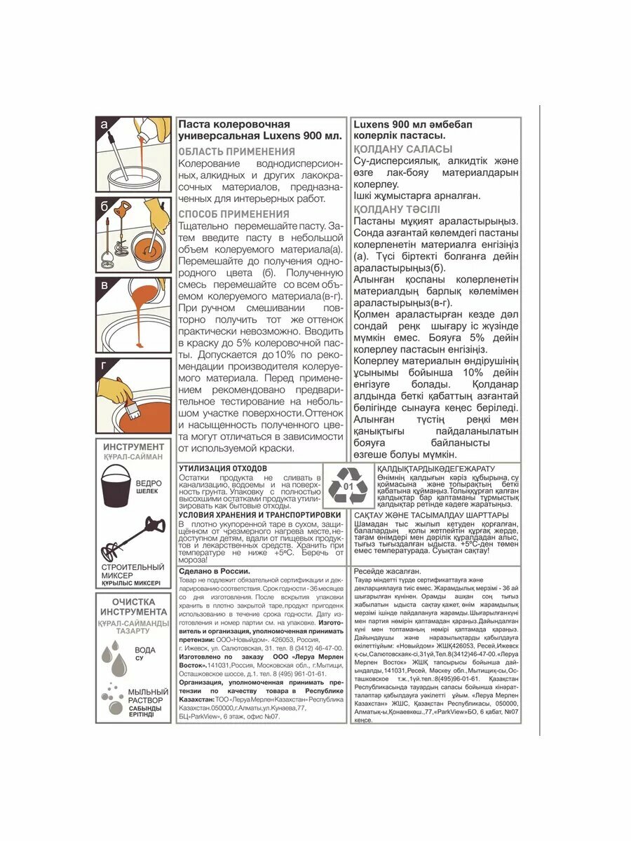 | Вид колера | колеровочная паста |