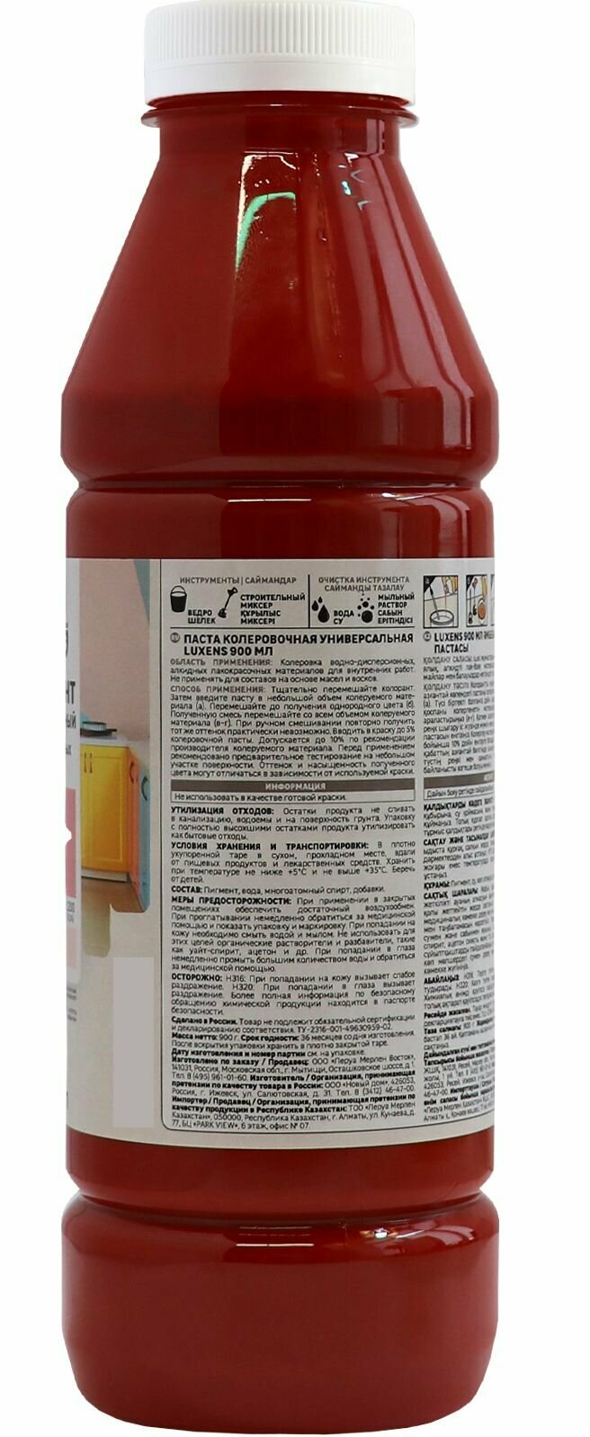 Колеровочная паста Luxens колорант универсальный для интерьерных работ, алый, 0.9 л