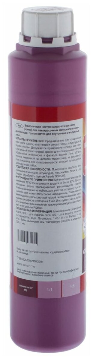 Колеровочная паста Parade CLASSIC, 270 сиреневый, 750 мл