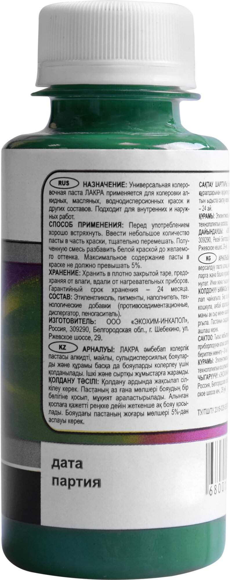Колер-паста Лакра 100мл Зеленый