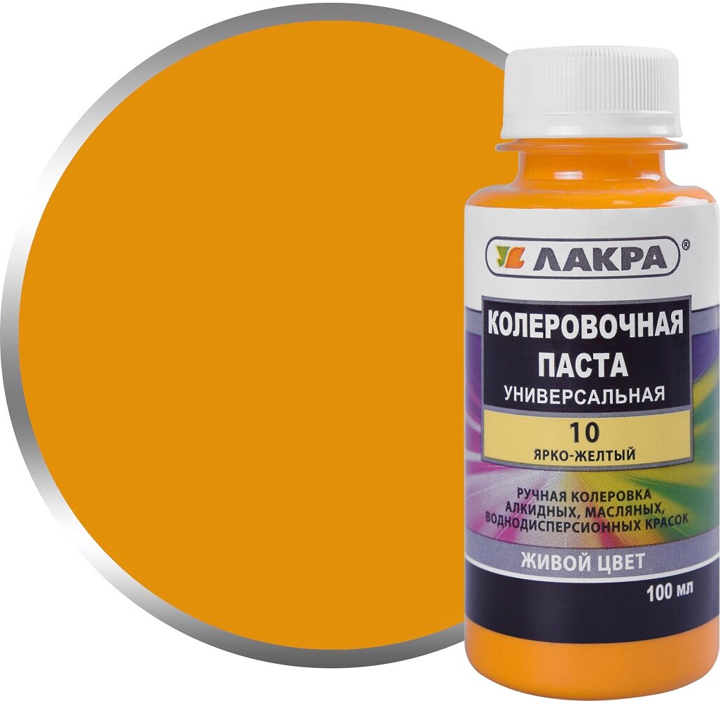 Колеровочная паста Лакра Универсальная, 10 ярко-желтый, 0.1 л