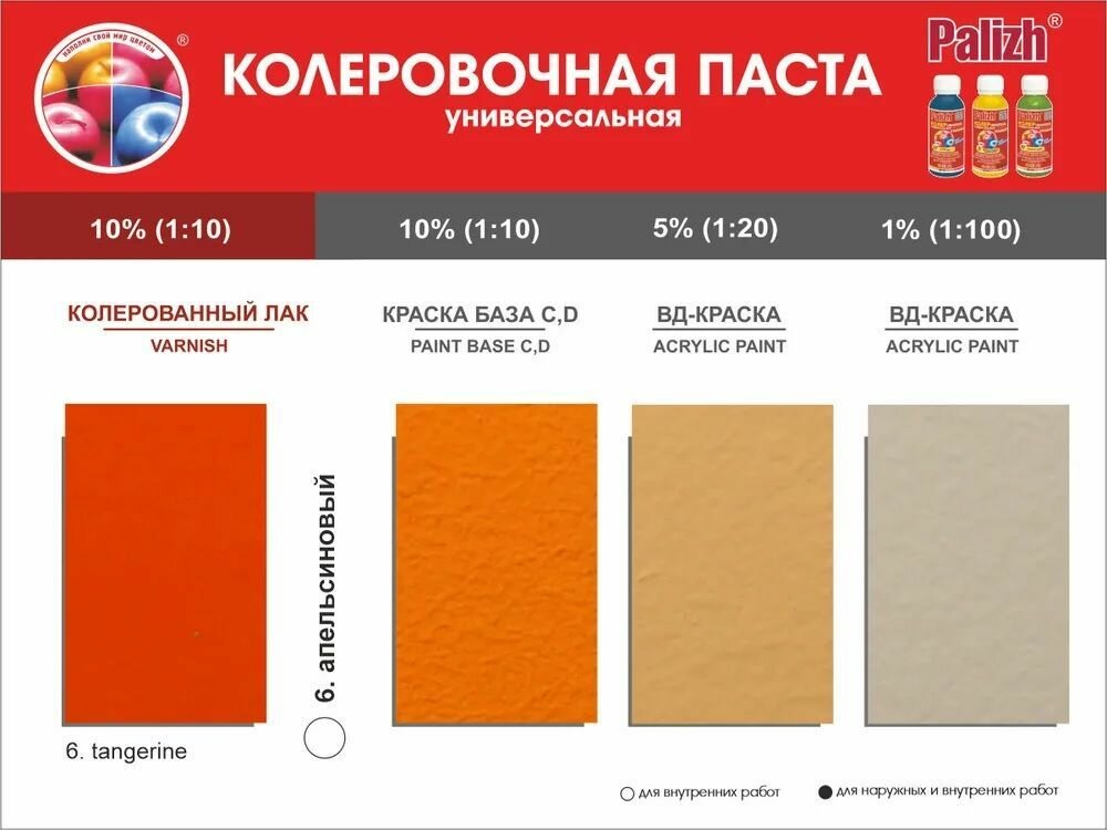 Паста колер универ. "Palizh STANDART" 0,1л № 6 апельсин