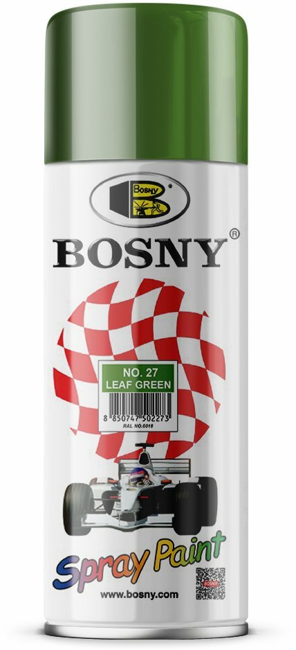 Аэрозольная краска в баллончике Bosny №27 акриловая универсальная, цвет зеленый лист, RAL 6024 (BOSNY NO. 27), 520 мл
