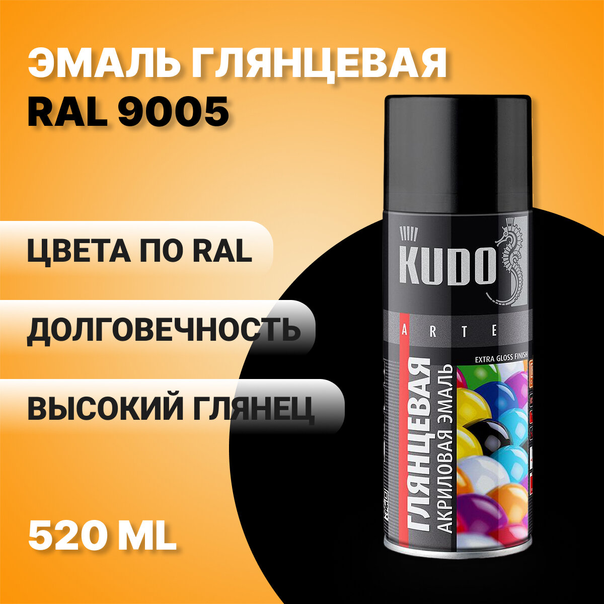 Kudo Эмаль универсальная акриловая RAL 9005 чёрная высокоглянцевая KU-A9005 .