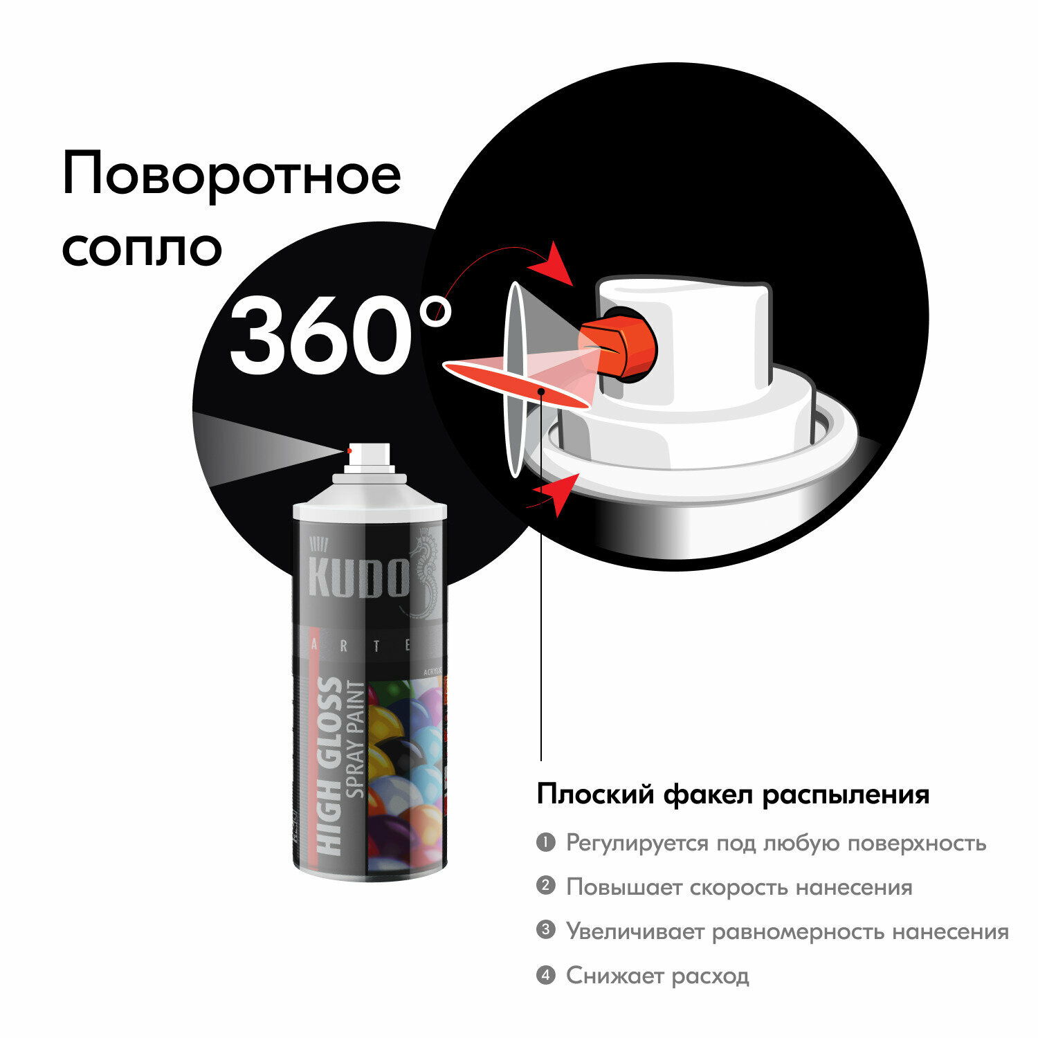 Эмаль аэрозольная Kudo Arte белая глянцевая RAL 9003 520 мл