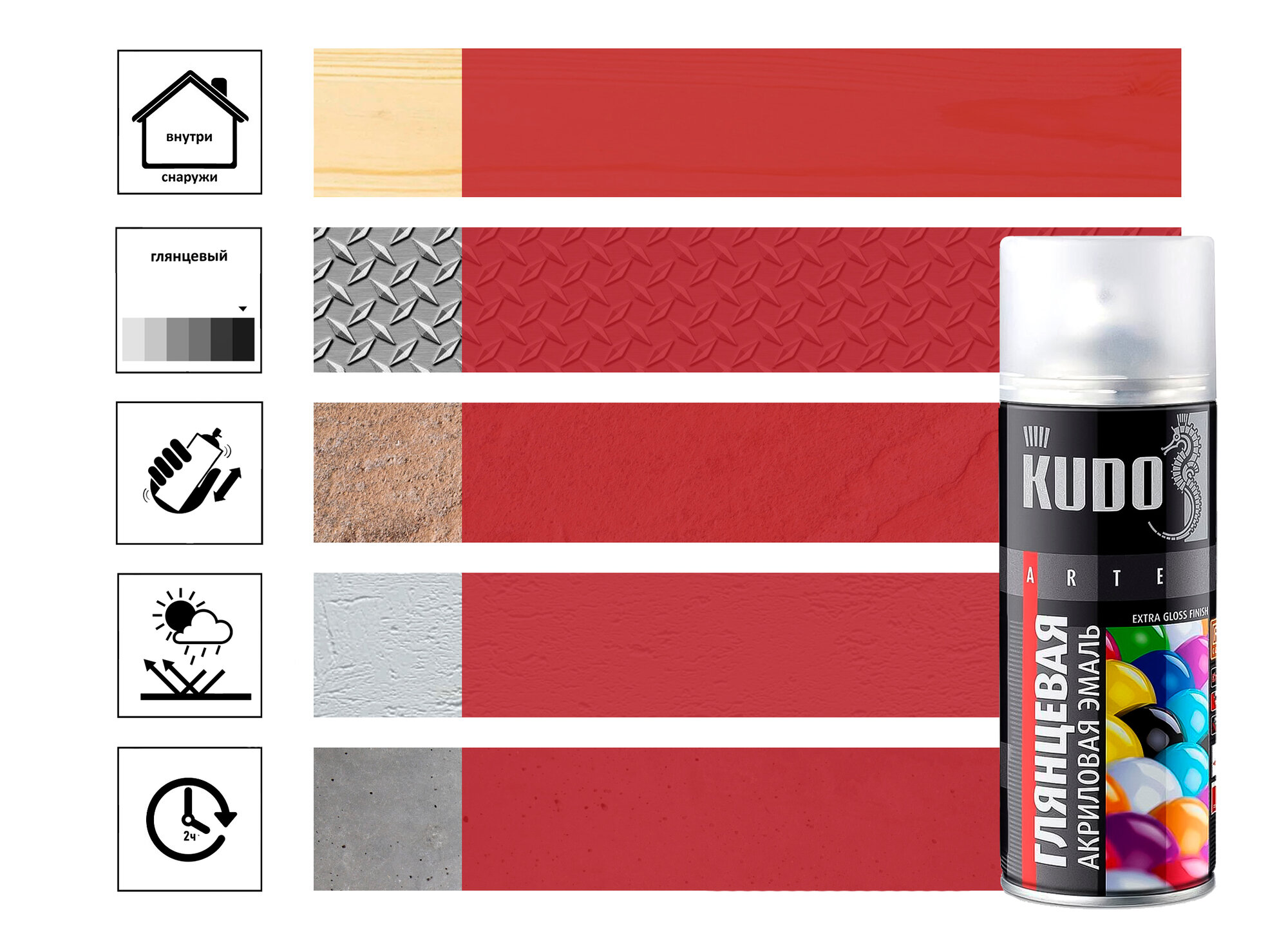 Купить Аэрозольная акриловая краска Kudo KU-A3002, глянцевая, 520 мл, темно-красная