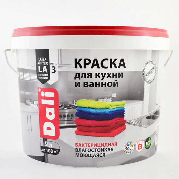 Краска для Кухни и Ванной Dali 9л Акрил-Латексная / Дали.