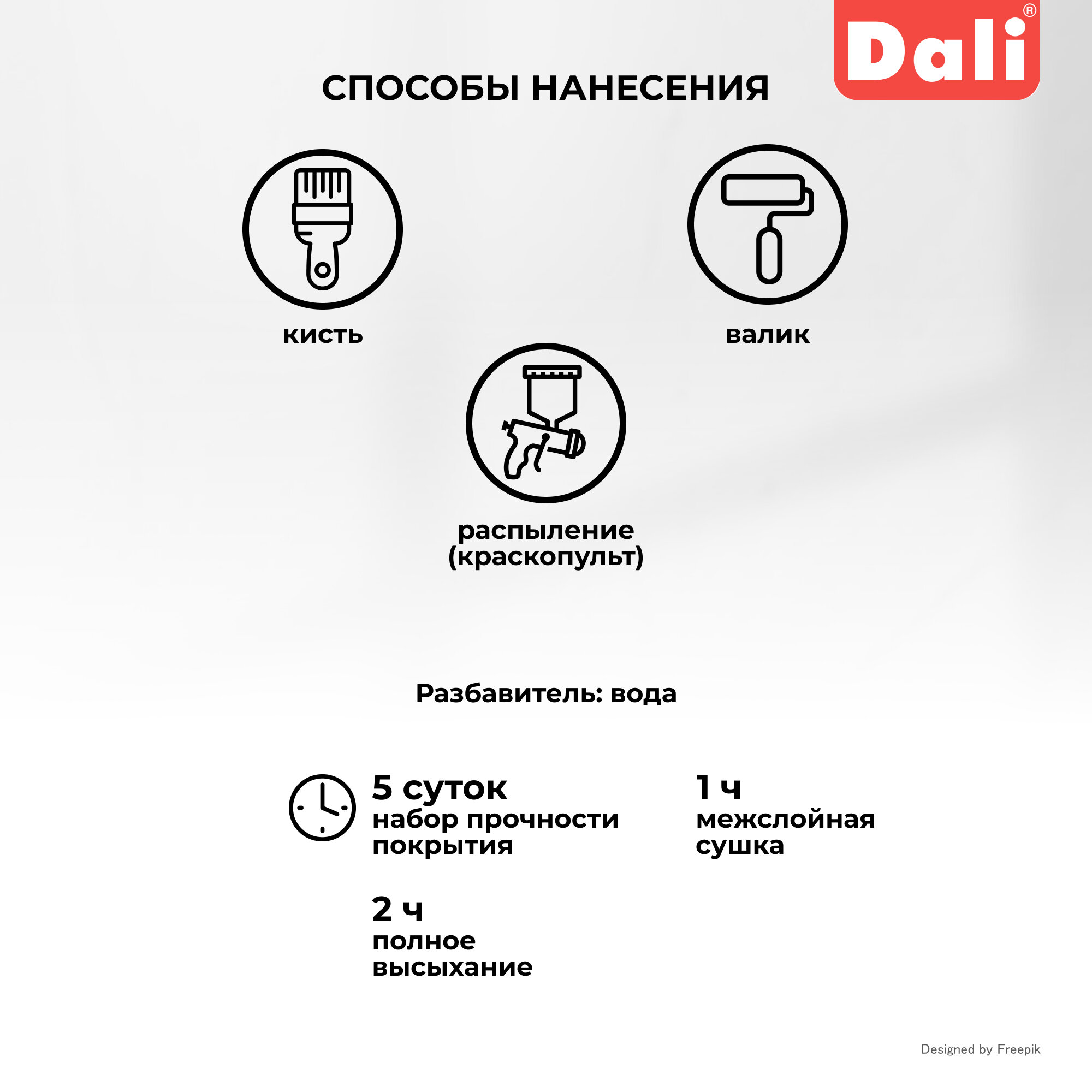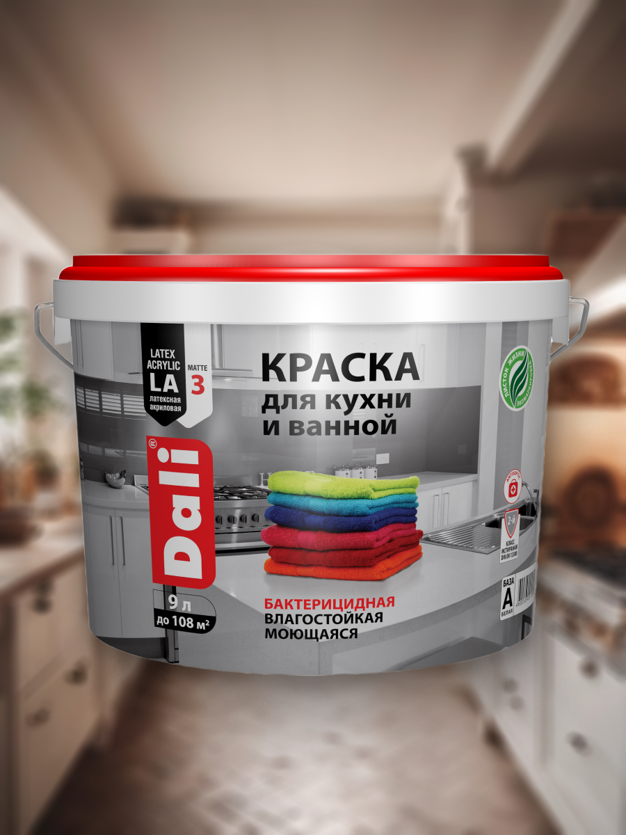 Dali / Дали краска для кухни и ванной акриловая моющаяся глубокоматовая А 9л