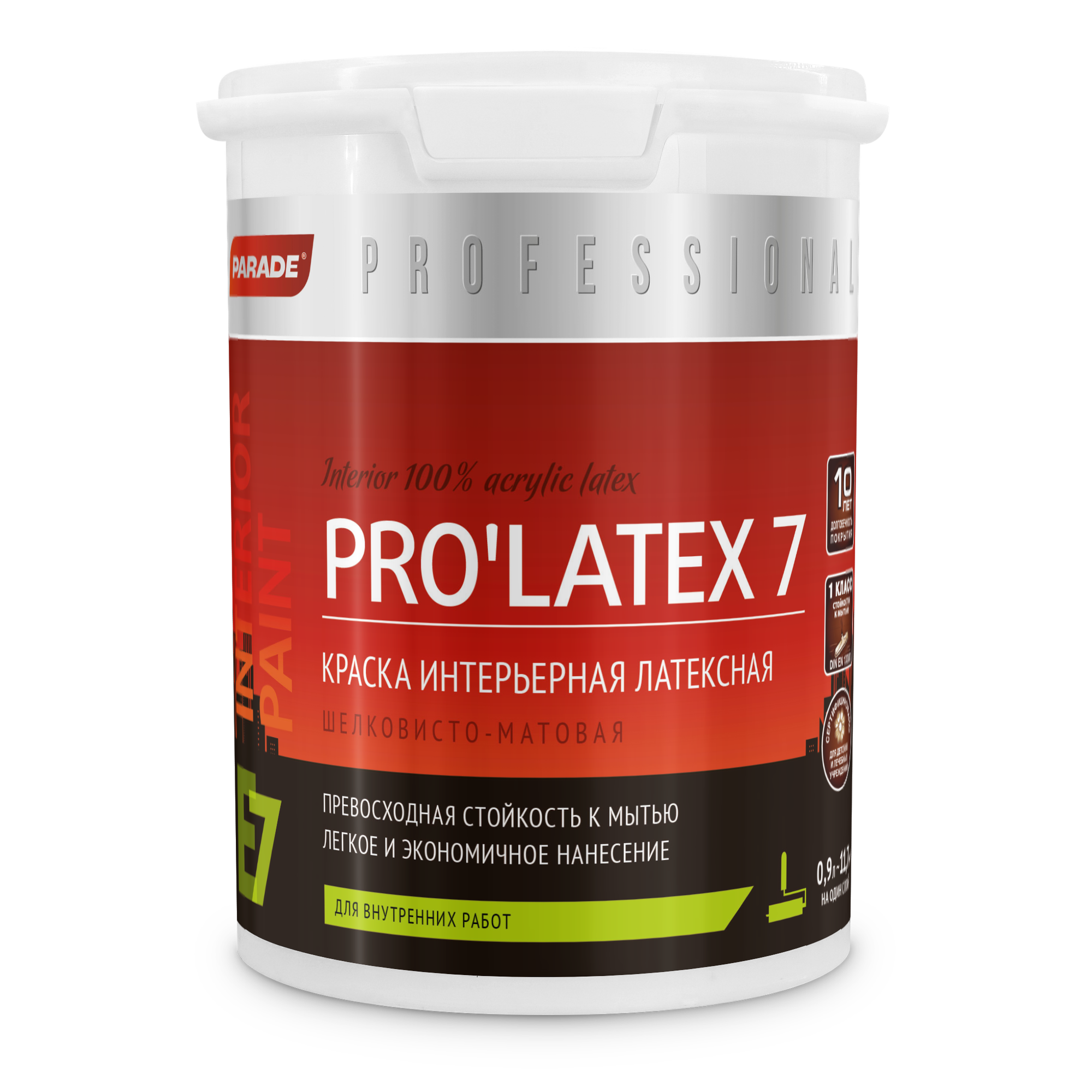 Краска латексная Parade Pro'latex Е7 база А шелковисто-матовая 0,9 л Россия Лк-00003409 .
