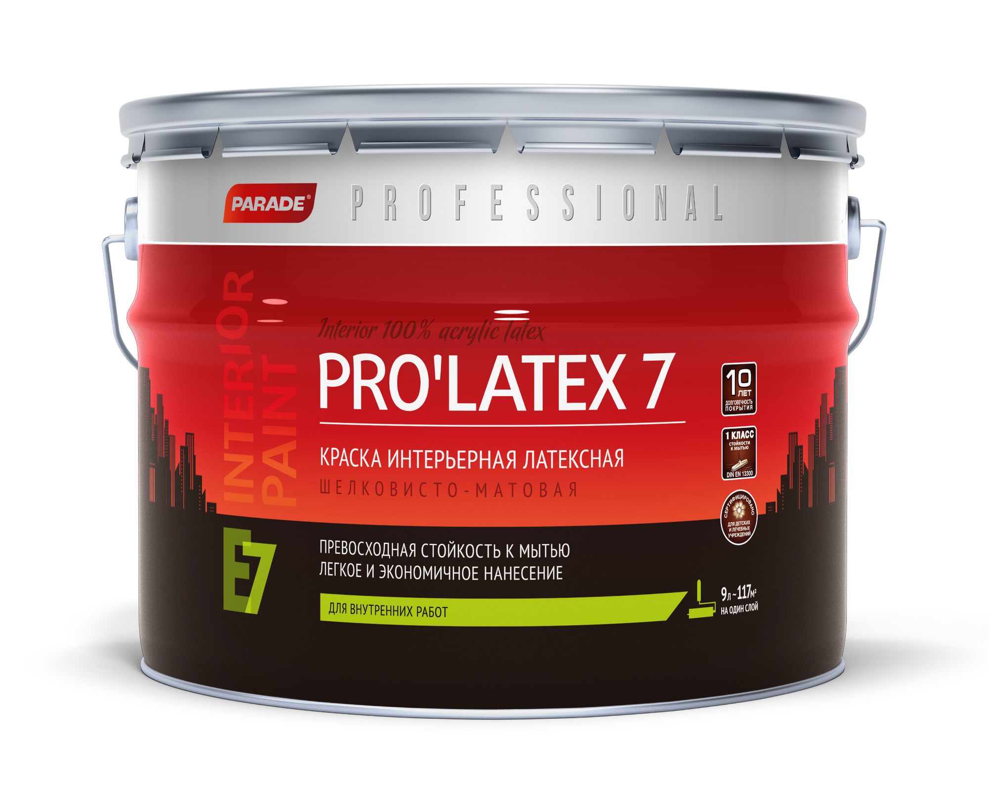 PARADE Краска латексная PRO'LATEX Е7 база А шелк-мат. 9л Россия Лк-00003411